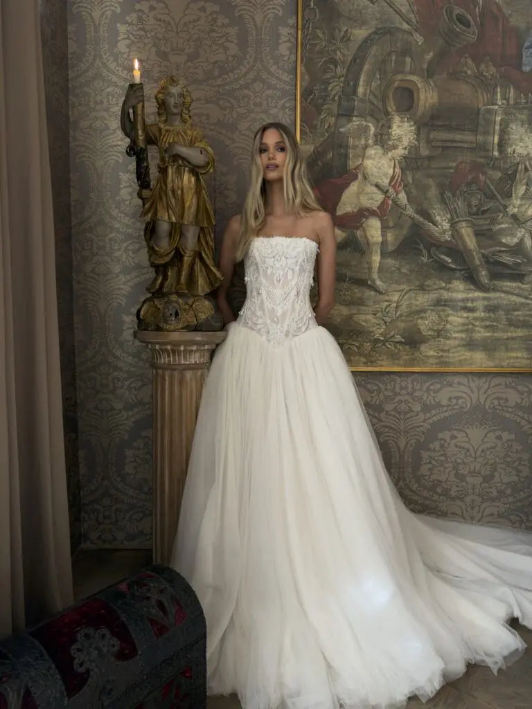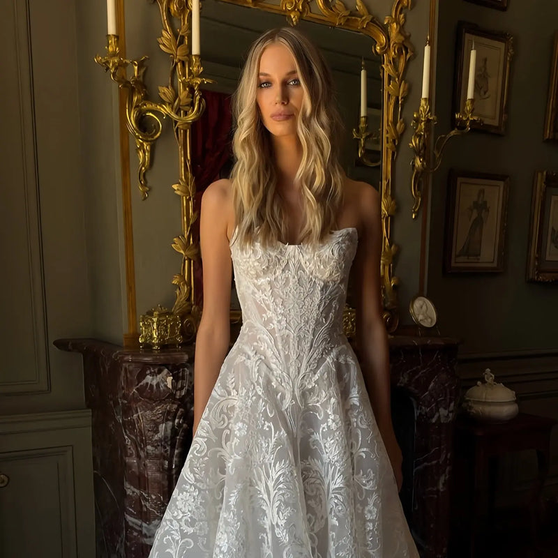 Elegant Strapless Lace Corset Ball Gown Wedding Dress SW217