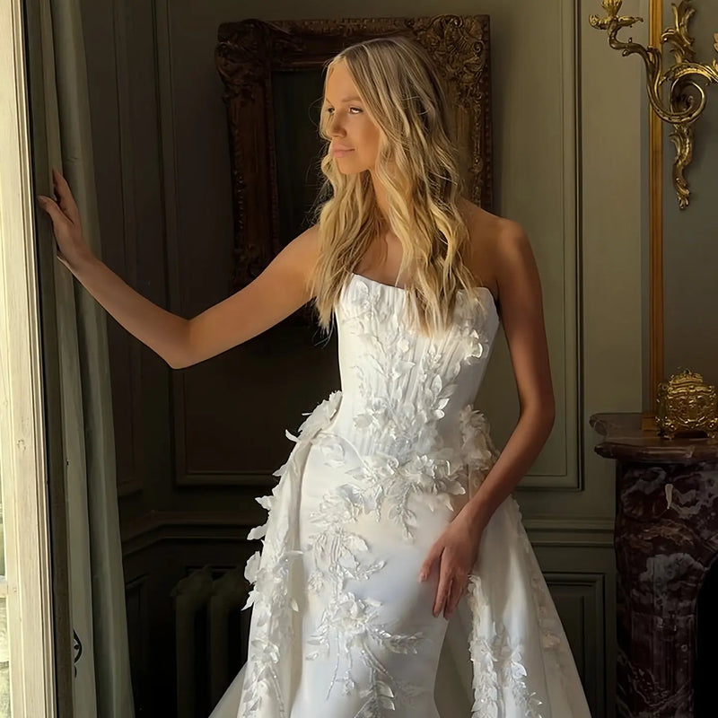 Luxury Strapless Lace Printed Mermaid Wedding Dress SW215