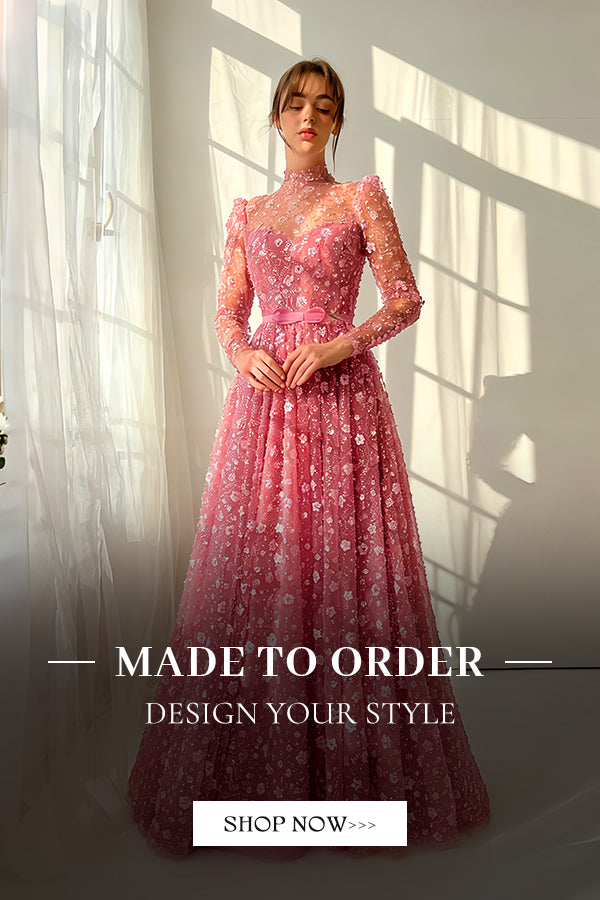 Luxury Peach Beaded Evening Dress with 3D flowers SS304
