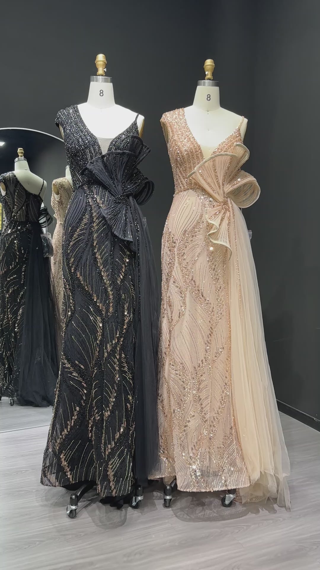 Luxury Beaded 3D Floral Evening Dress with Overskirt SS062
