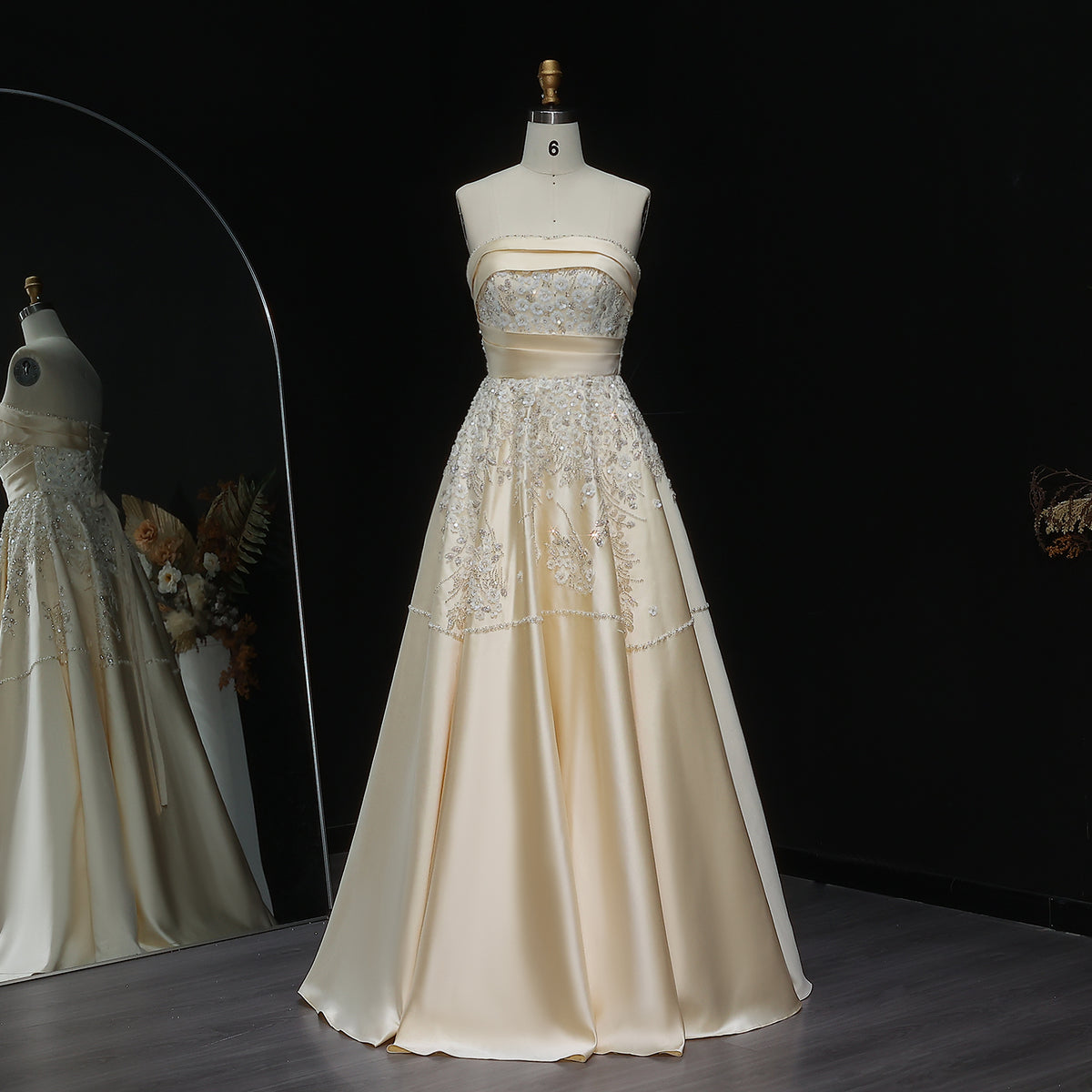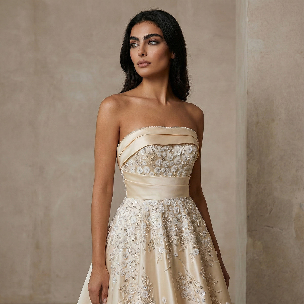 Elevate your evening elegance with this exquisite champagne sequin gown, where intricate 3D floral beadwork creates a mesmerizing dimensional effect. The shimmering sequin fabric catches light beautifully, ensuring you command attention at any formal occasion. Meticulously crafted details showcase refined craftsmanship, while the sophisticated silhouette flatters and inspires confidence. Perfect for galas, weddings, and black-tie events, this statement piece transforms you into the evening's focal point. Model XD045 delivers timeless glamour with contemporary artistry.