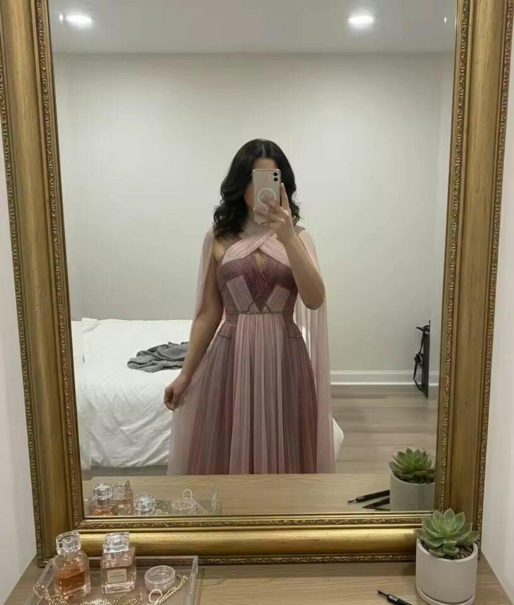 Elevate your evening elegance with this stunning ombre pink tulle gown, where soft blush tones gracefully transition to deeper rose hues. The voluminous tulle skirt creates a romantic silhouette, while the dramatic cape adds an air of refined sophistication and movement. Perfect for galas, formal celebrations, or red-carpet moments, this dress combines timeless glamour with contemporary design. The flowing fabric drapes beautifully, ensuring you'll turn heads and feel absolutely radiant throughout the night.