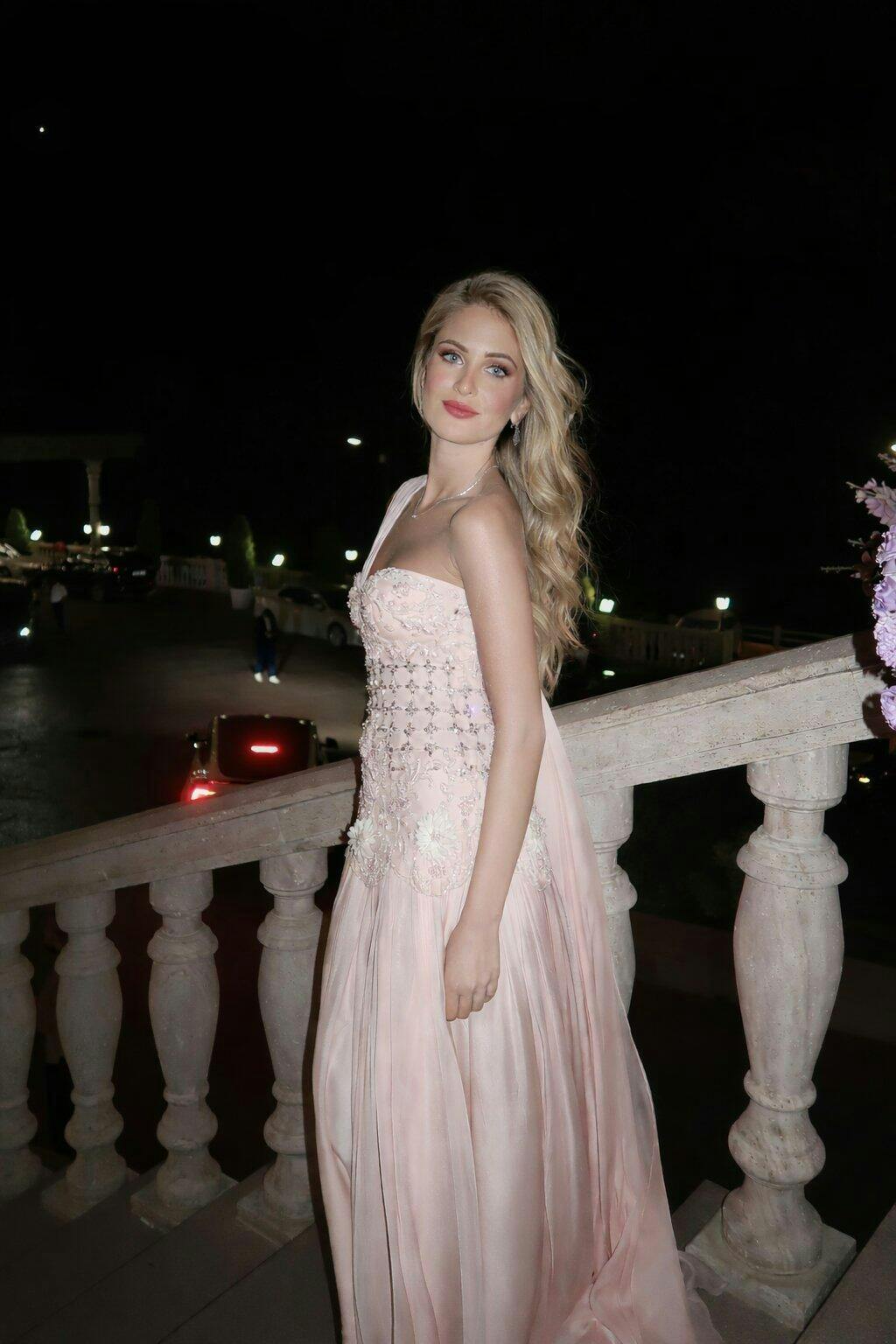 Elevate your evening elegance with this stunning blush pink gown, where intricate beadwork meets dimensional floral artistry. The dramatic one-shoulder silhouette is complemented by a graceful cape that flows with refined movement, creating an unforgettable presence at any formal occasion. Each bead is meticulously placed to catch the light, while the three-dimensional floral embellishments add depth and texture that photographs beautifully. Perfect for galas, weddings, and red-carpet moments, this SS285 design embodies timeless luxury and contemporary sophistication.