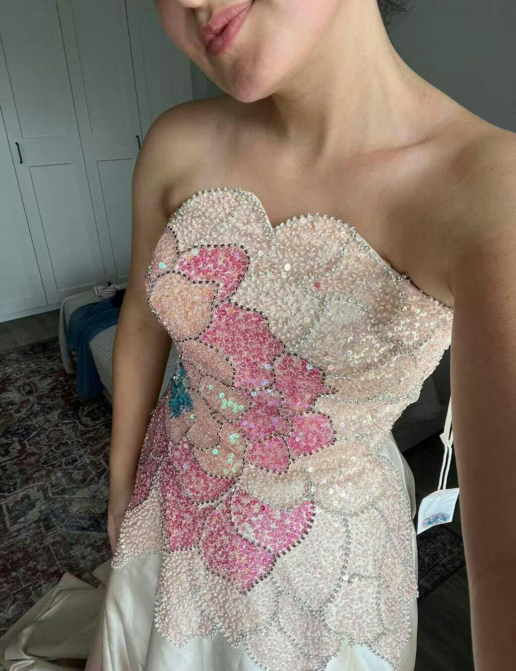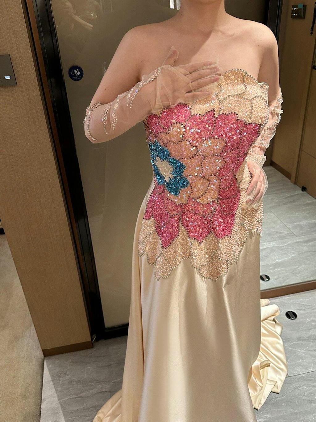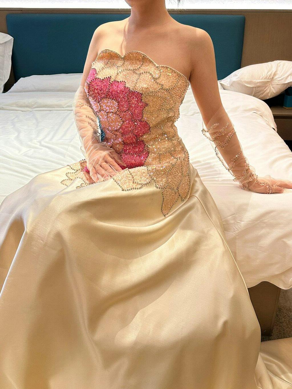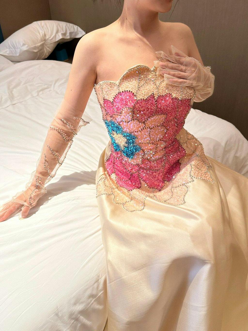 Luxury Beaded Strapless Evening Dress with Gloves SS513