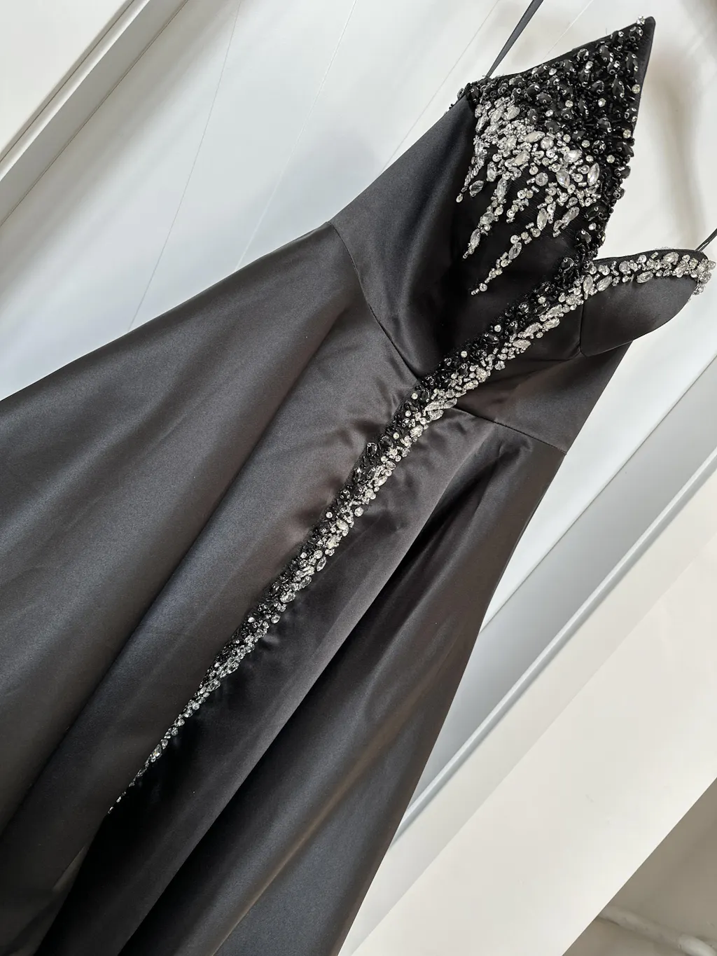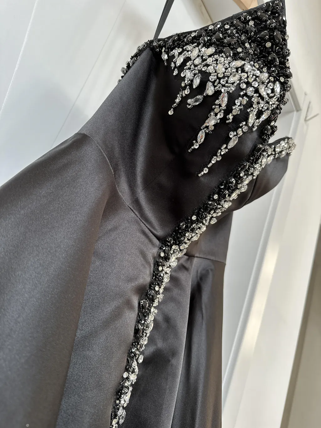 Elegant Crystal Black Strapless Evening Dresses Side Slit SS364