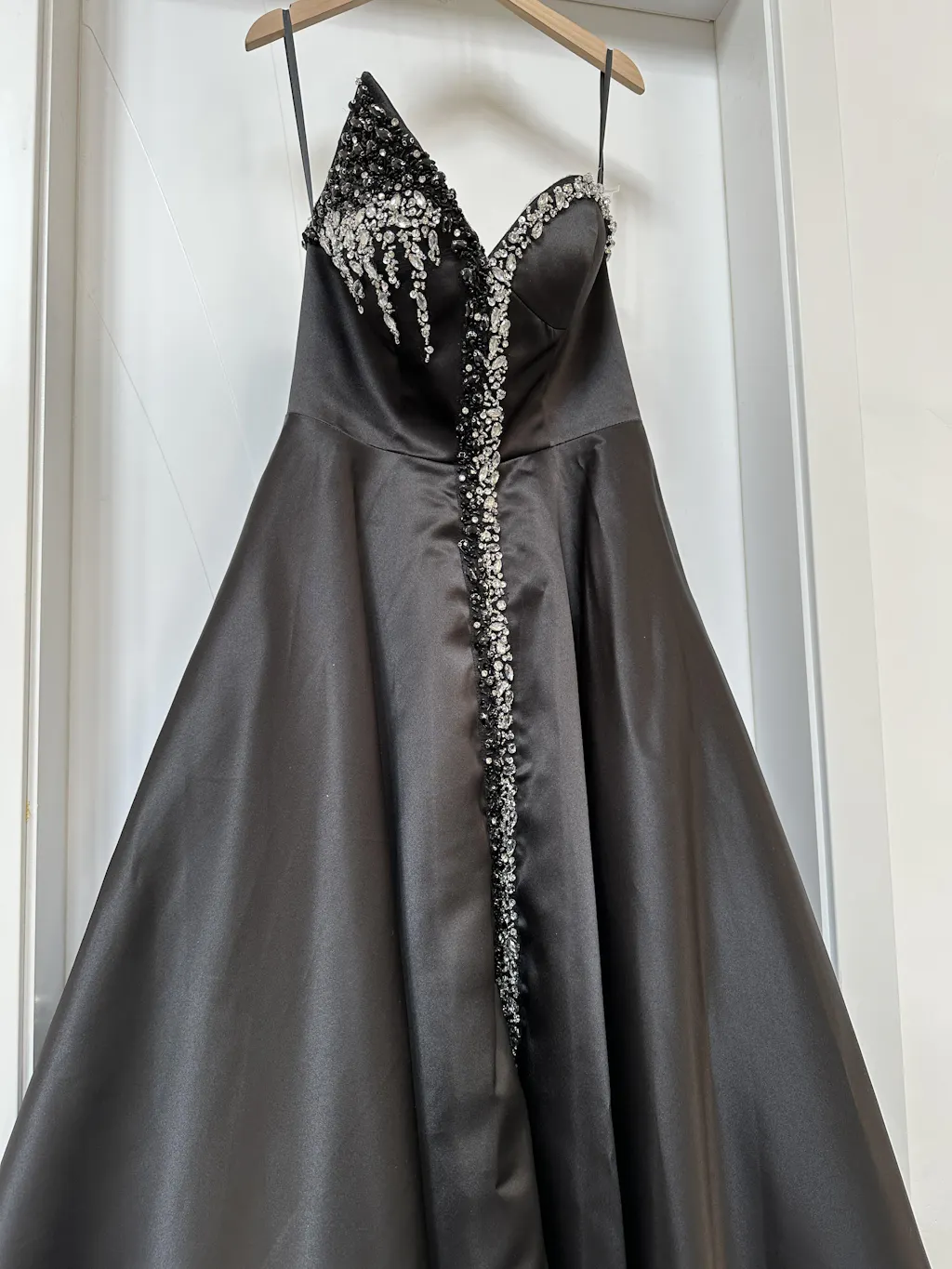 Embody elegance and glamour with our Elegant Crystal Black Strapless Evening Dress. Featuring a stunning side slit and intricate crystal accents, this dress is perfect for any special occasion. Leave a lasting impression and turn heads in this sophisticated and chic piece.