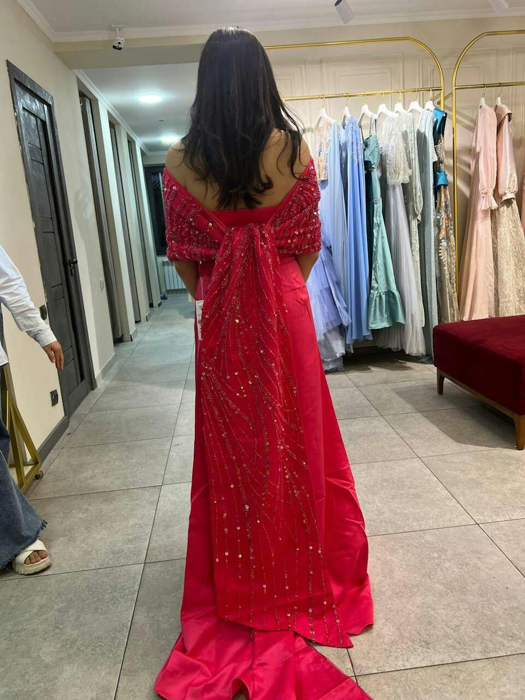 Discover elegance and style in our Sharon Said Fuchsia Arabic Evening Dress. Featuring an off-shoulder design and a flowing cape, this dress is perfect for weddings, parties, and formal events. Made from high-quality fabric, it is comfortable to wear and will make you stand out with its vibrant color. Elevate your look and make a statement with this stunning dress.