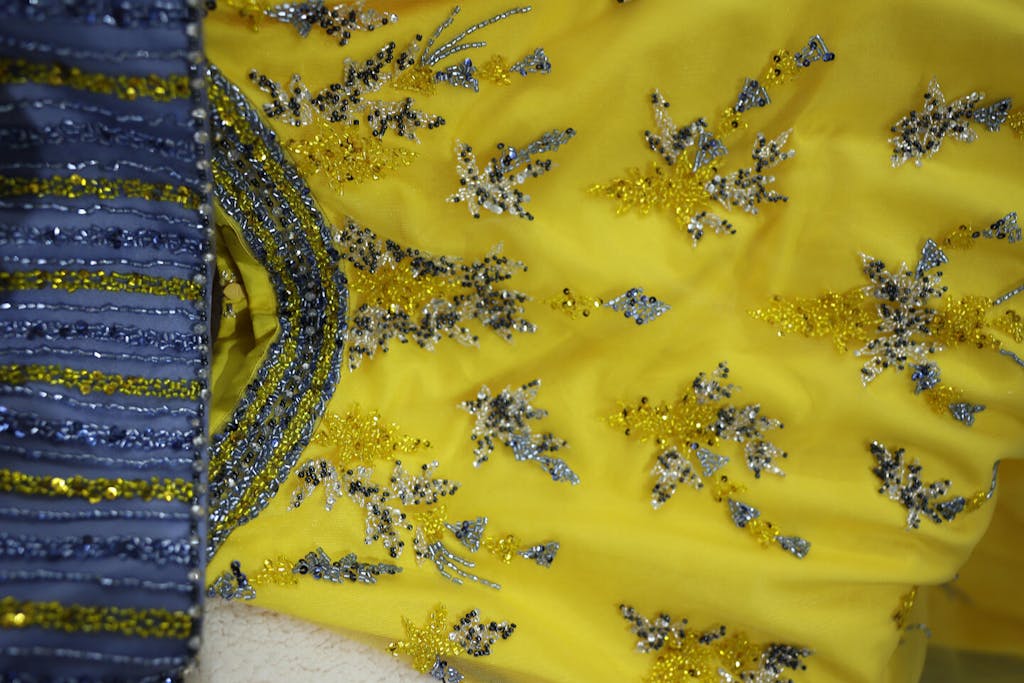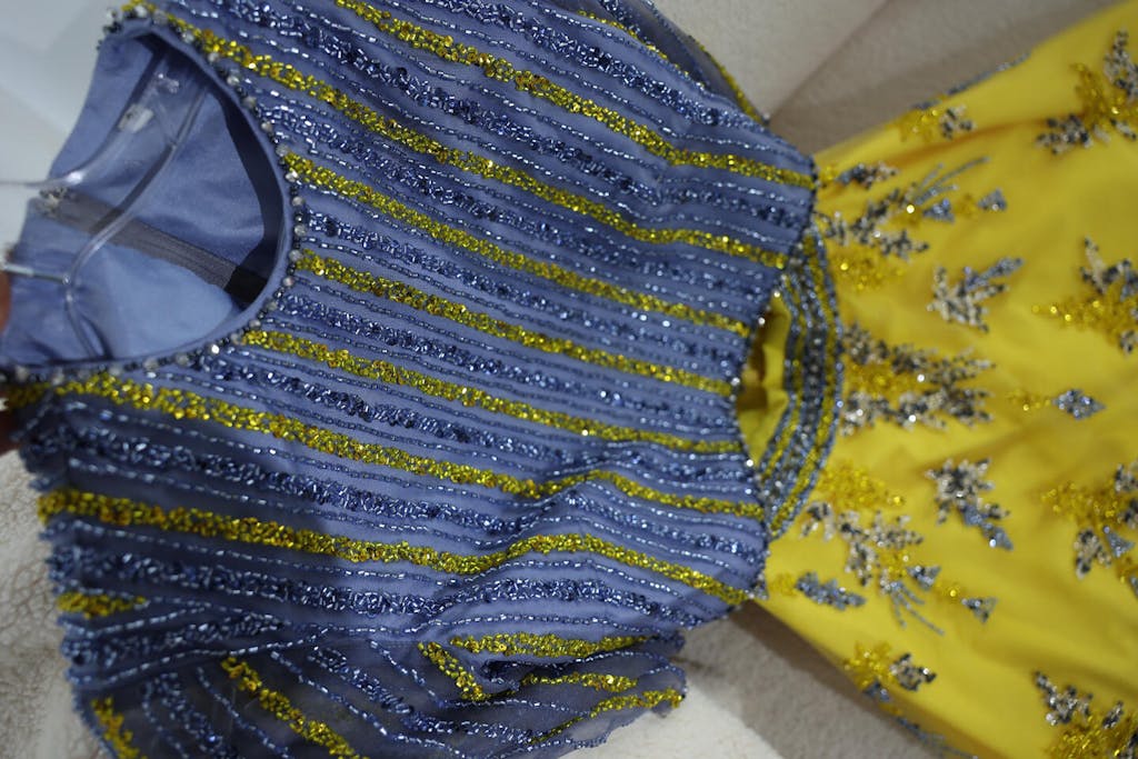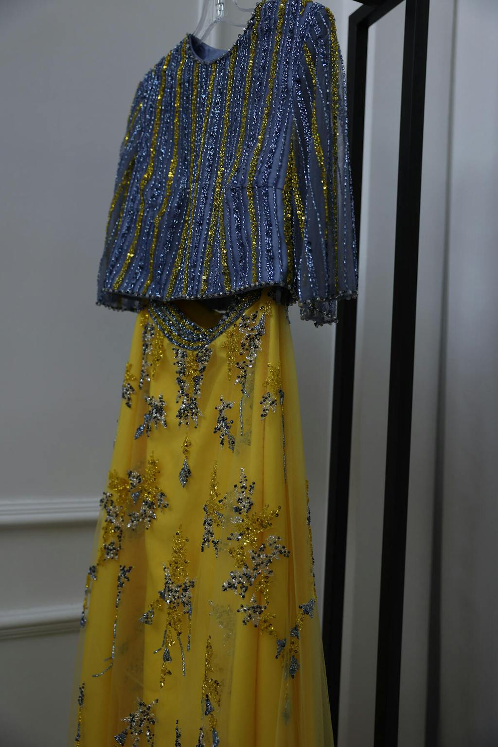 Discover the ultimate in luxury with Sharon Said's Dubai Blue Yellow 2 Pieces Evening Dresses. These elegant long Arabic formal gowns are perfect for any wedding party or prom event. Expertly crafted for a flawless fit, embrace the opulence and sophistication of this stunning dress.