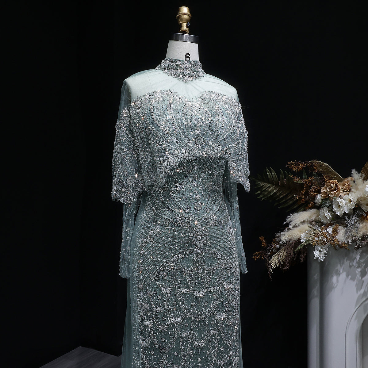 Elevate your evening elegance with this Luxury Gray Beaded Crystal Evening Dress featuring a graceful cape. Intricately adorned with shimmering crystals and delicate beadwork, this dress offers a refined silhouette that captures attention effortlessly. The flowing cape adds a dramatic yet sophisticated touch, perfect for making a memorable entrance at any formal occasion. Crafted to combine timeless style with modern glamour, it ensures you feel confident and radiant throughout your special night.