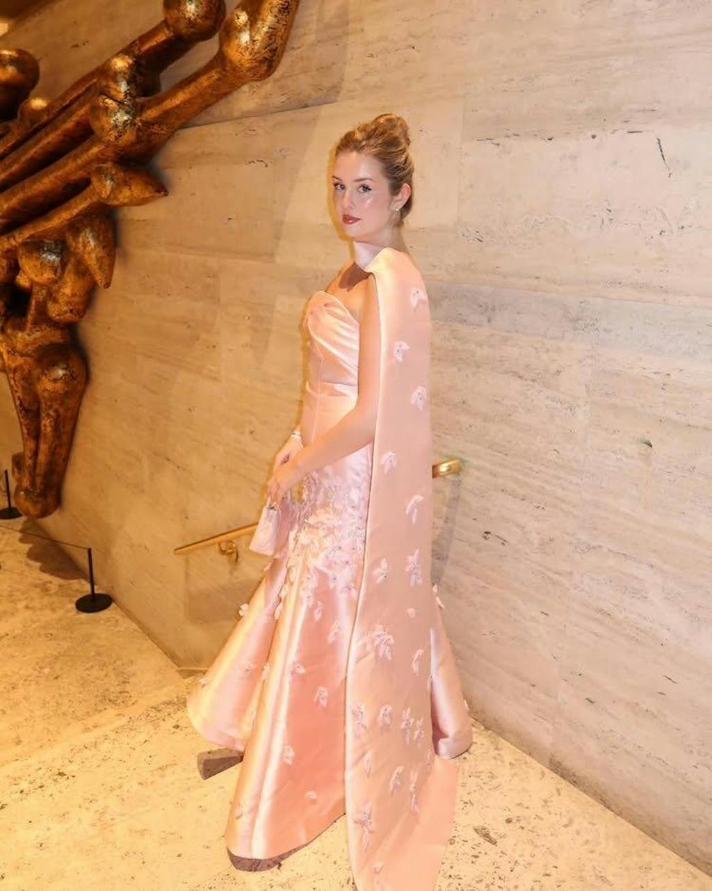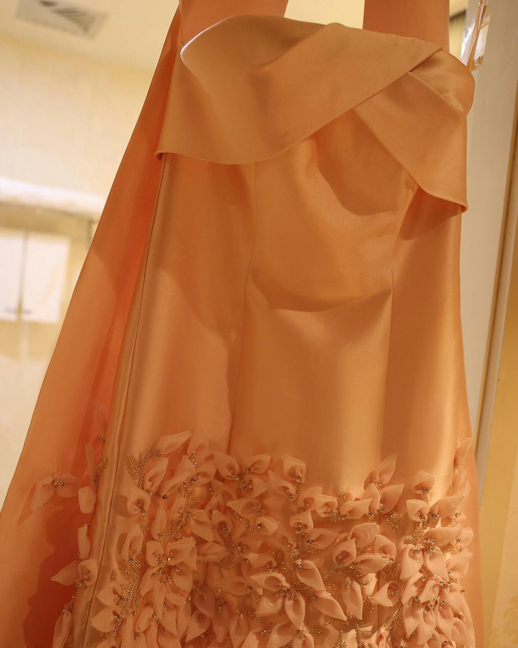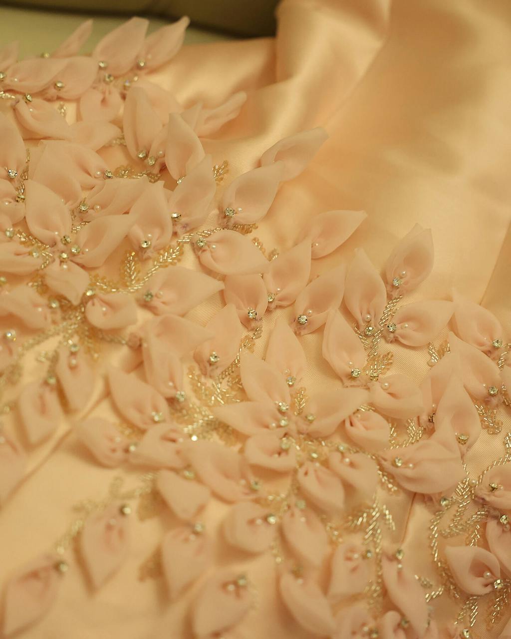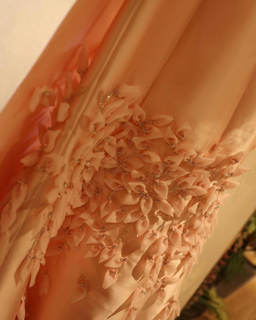 Luxury 3D Leaves Pink Satin Evening Dress with Cape SS463