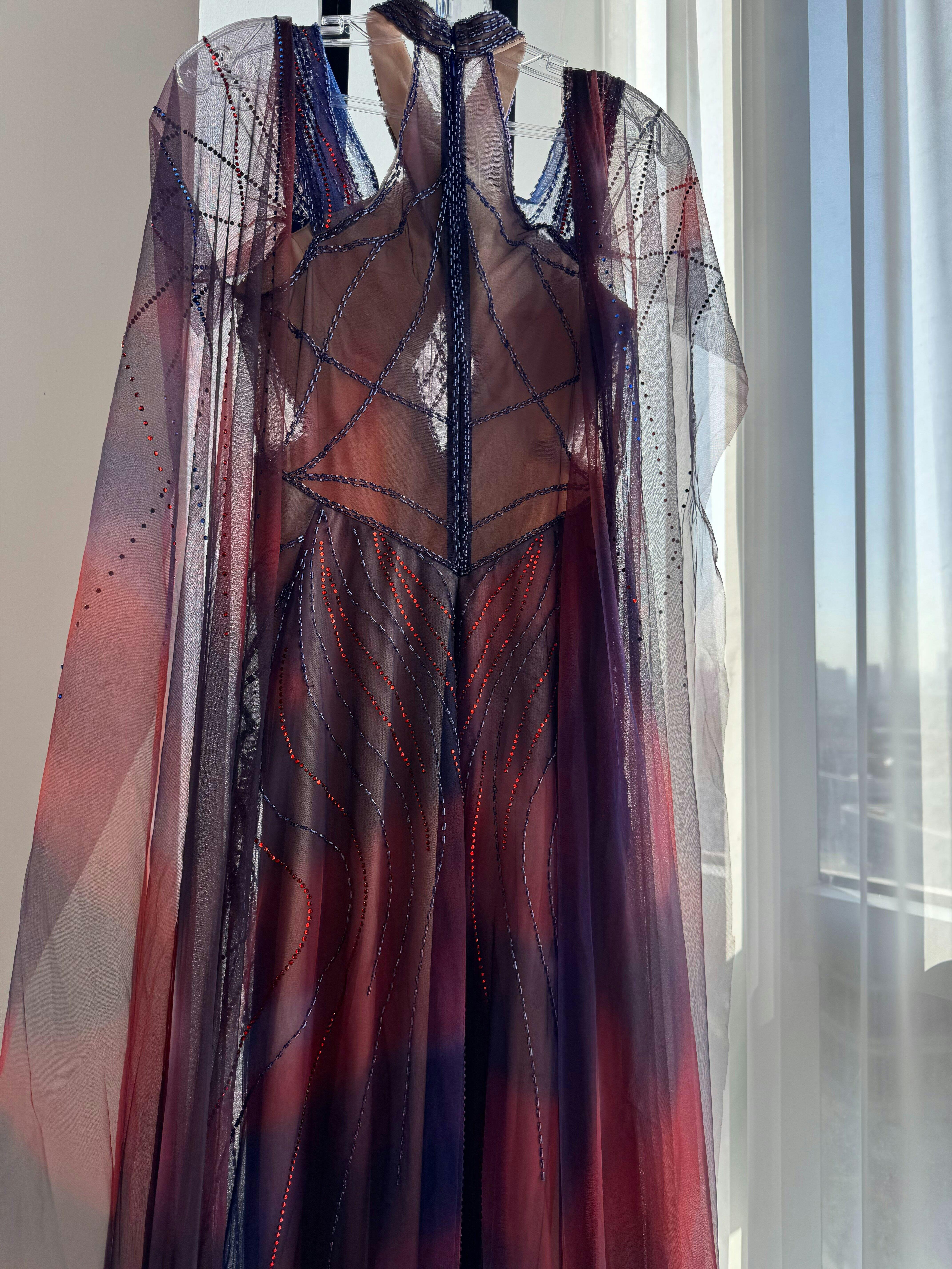 Indulge in timeless elegance with this exquisite mermaid evening dress, meticulously crafted for the discerning woman. Adorned with intricate beading and shimmering crystals, the fitted silhouette gracefully flows into a dramatic fishtail hem that commands attention. The accompanying cape adds an air of regal sophistication, perfect for formal galas and prestigious events. Every detail whispers luxury, from the precision-placed embellishments to the impeccable tailoring. Make an unforgettable entrance in a gown designed to celebrate your most radiant self.