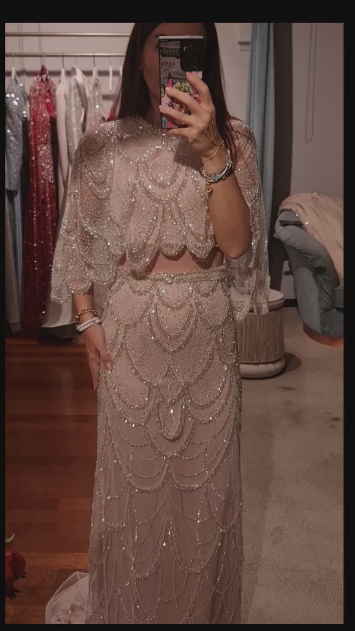 Luxury Champagne Beaded Evening Dress with Cape SS071