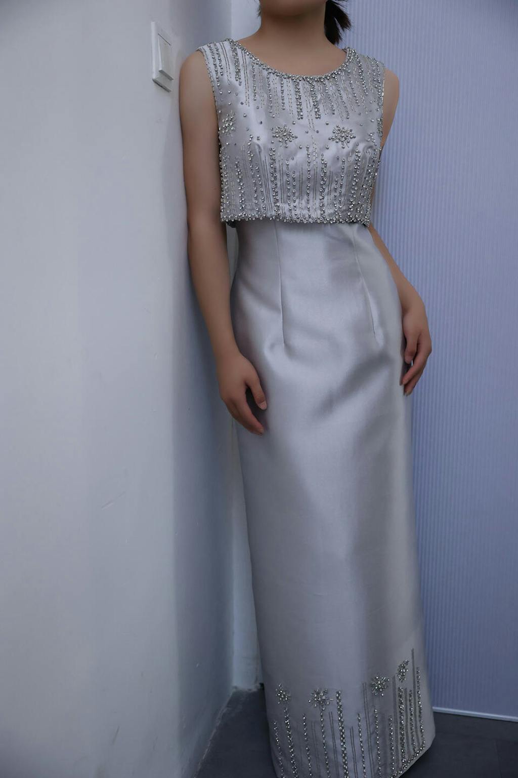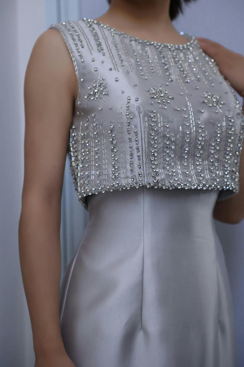 Luxury Rhinestones Silver Midi Evening Dress SS277