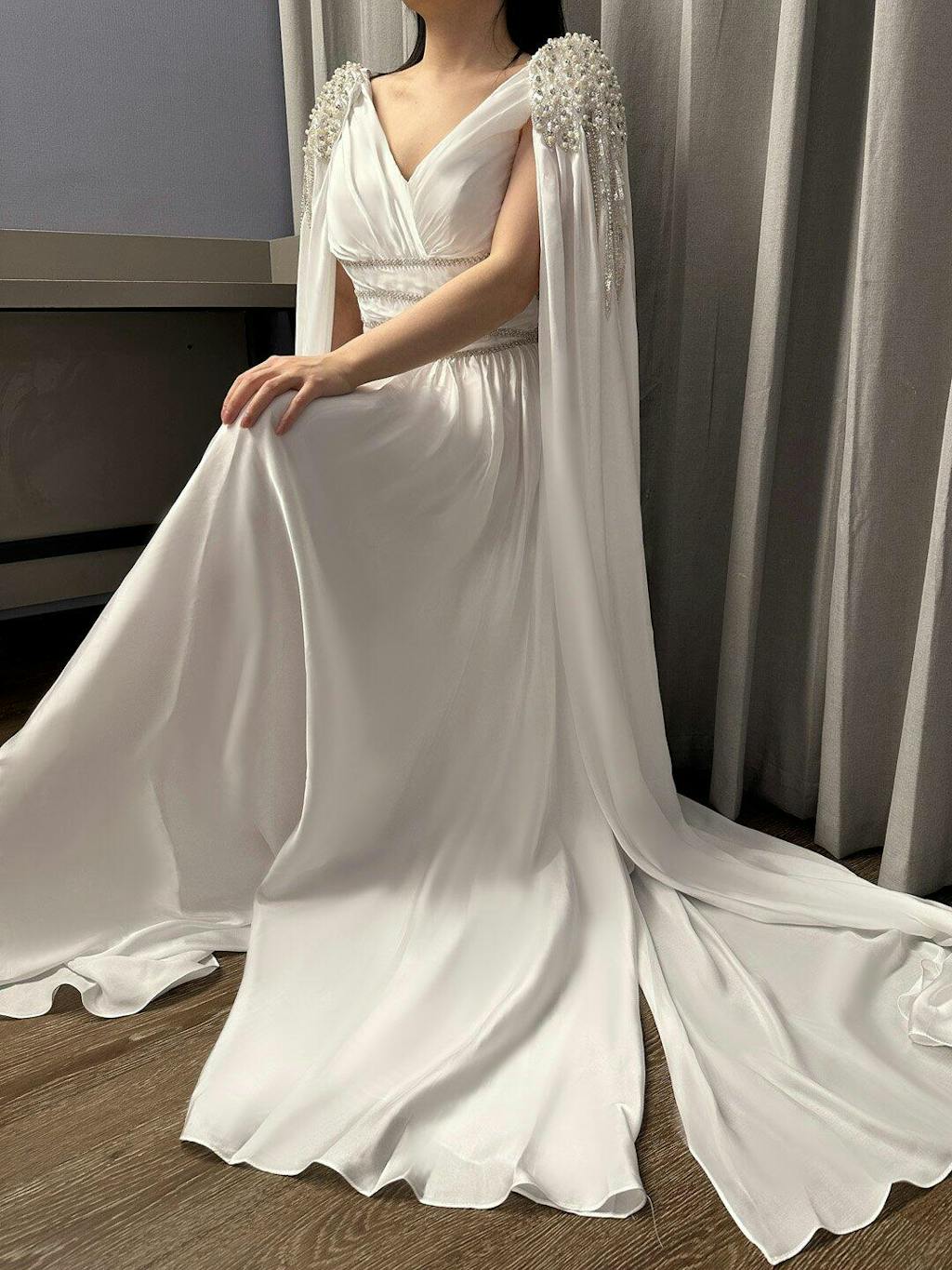 Luxury Crystal Rose Gold Evening Dress with Cape SS589