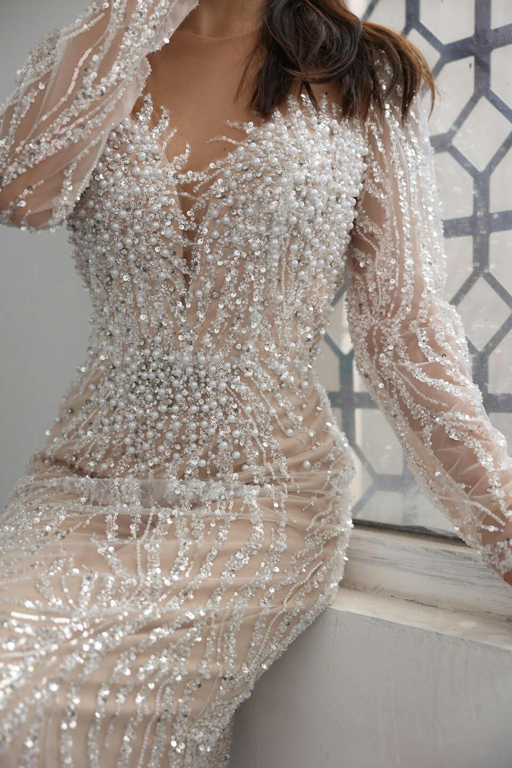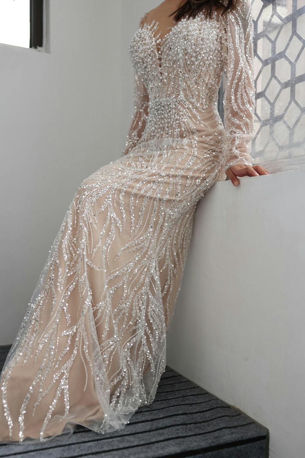 Indulge in elegance with our Luxury White Nude Long Sleeves Mermaid Evening Dress SS684. This stunning piece features a mermaid silhouette and long sleeves for a sleek and sophisticated look. Perfect for evening events, this dress will make you feel like royalty.