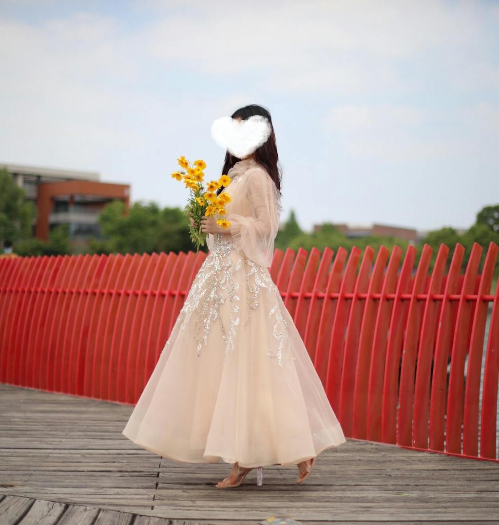 Elegant Champagne Long Sleeve Ruffels Evening Dress SS480