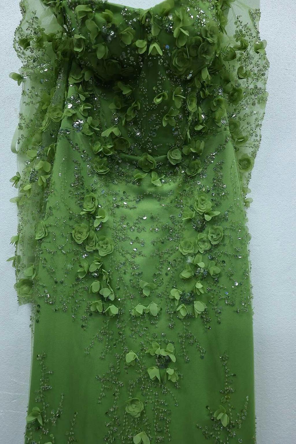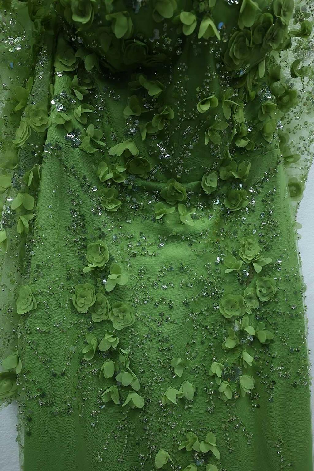 Luxury Green 3D Floral Evening Dress with Long Sleeves SS355