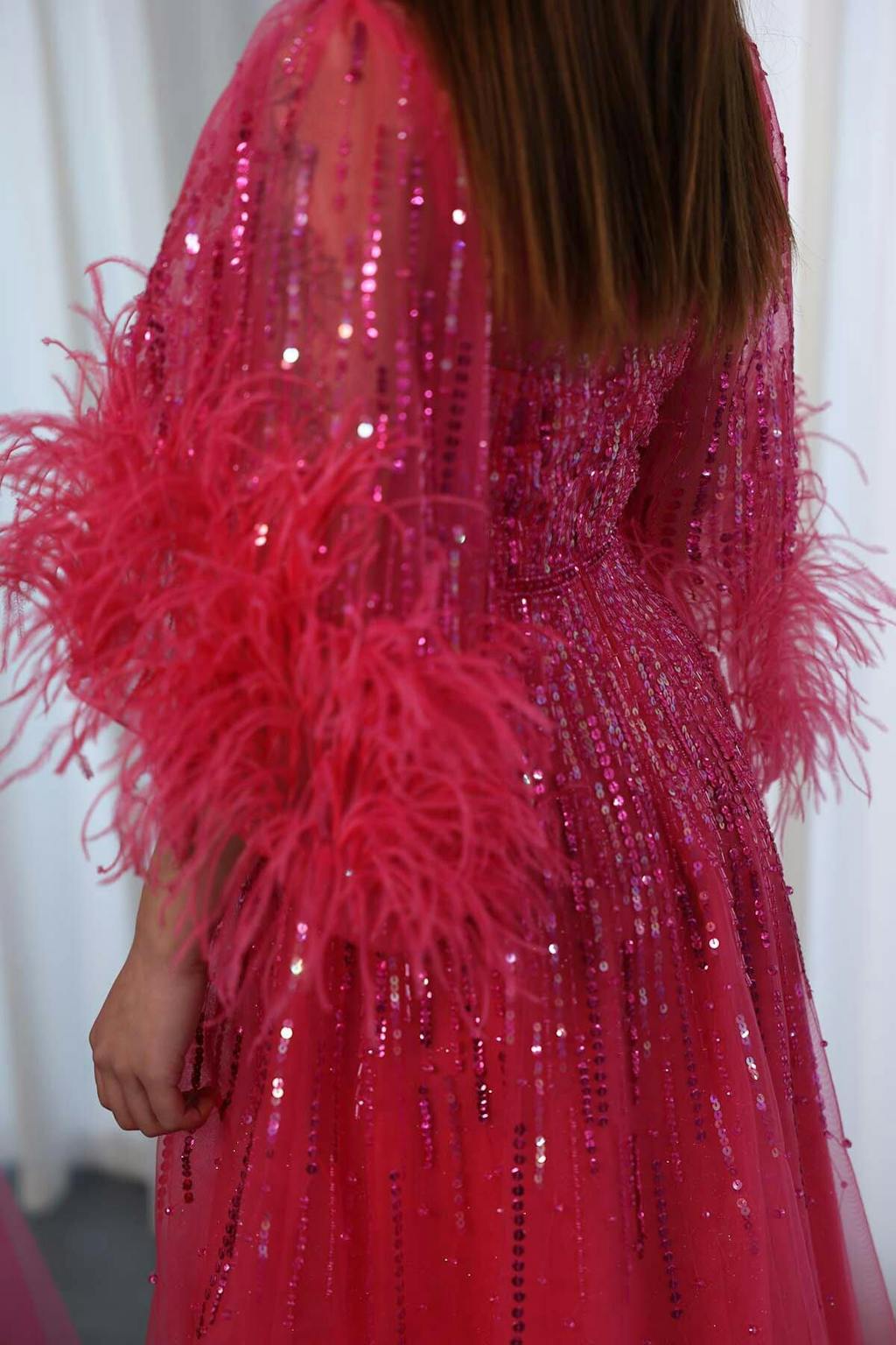 Luxury Feathers Black Half Sleeve Evening Dress SS339