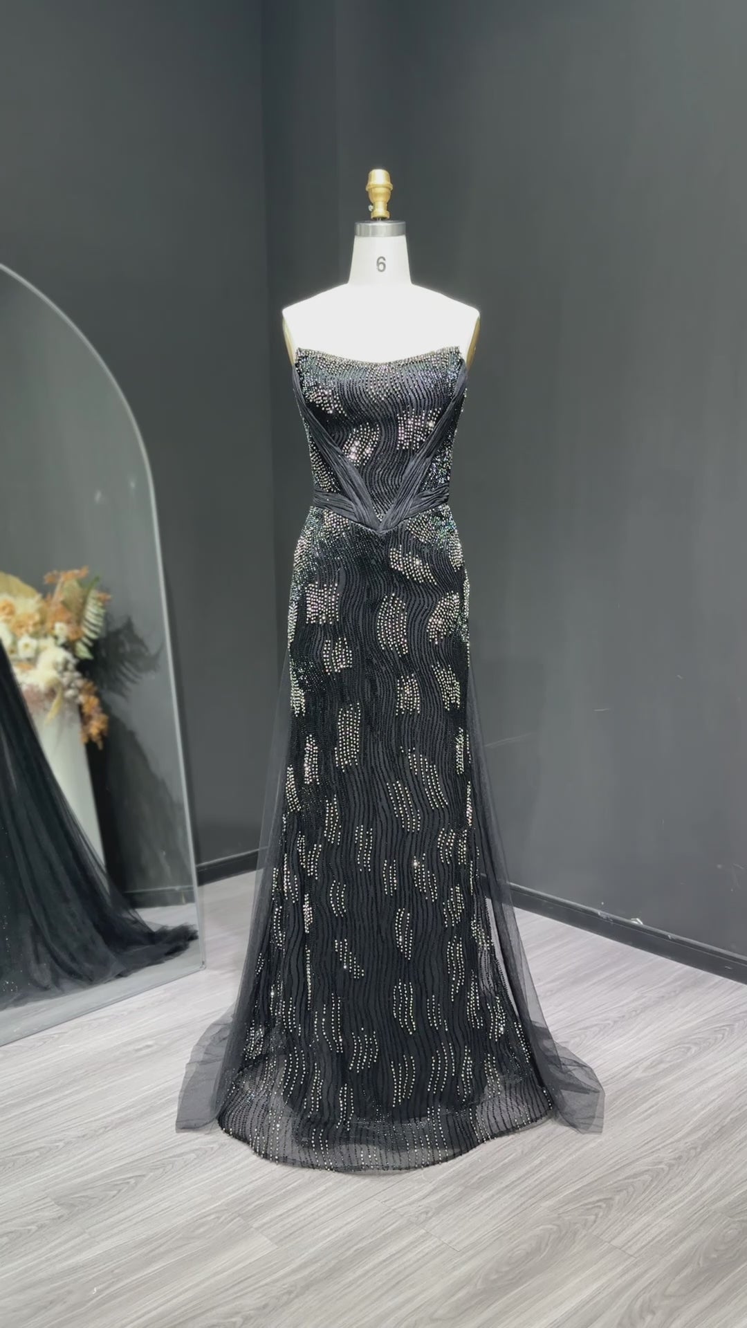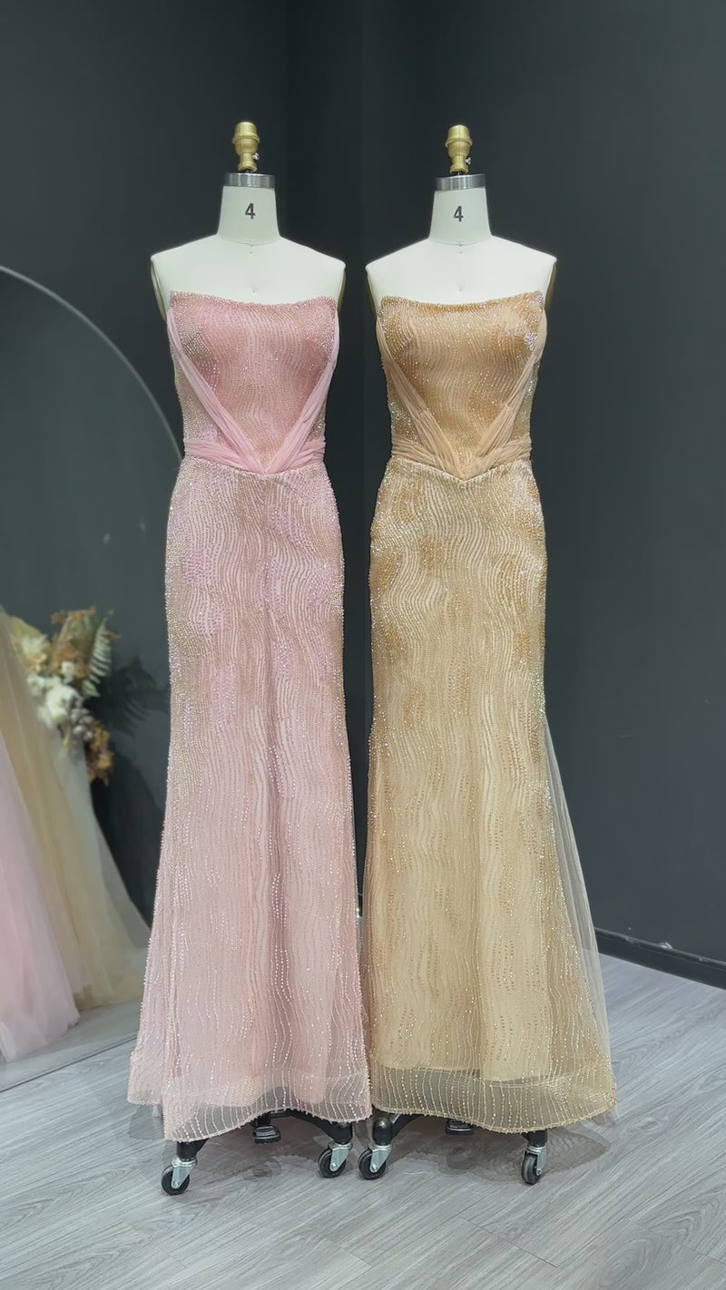 Luxuriöses, perlenbesetztes, rosa Meerjungfrau-Abendkleid mit Überrock SS023