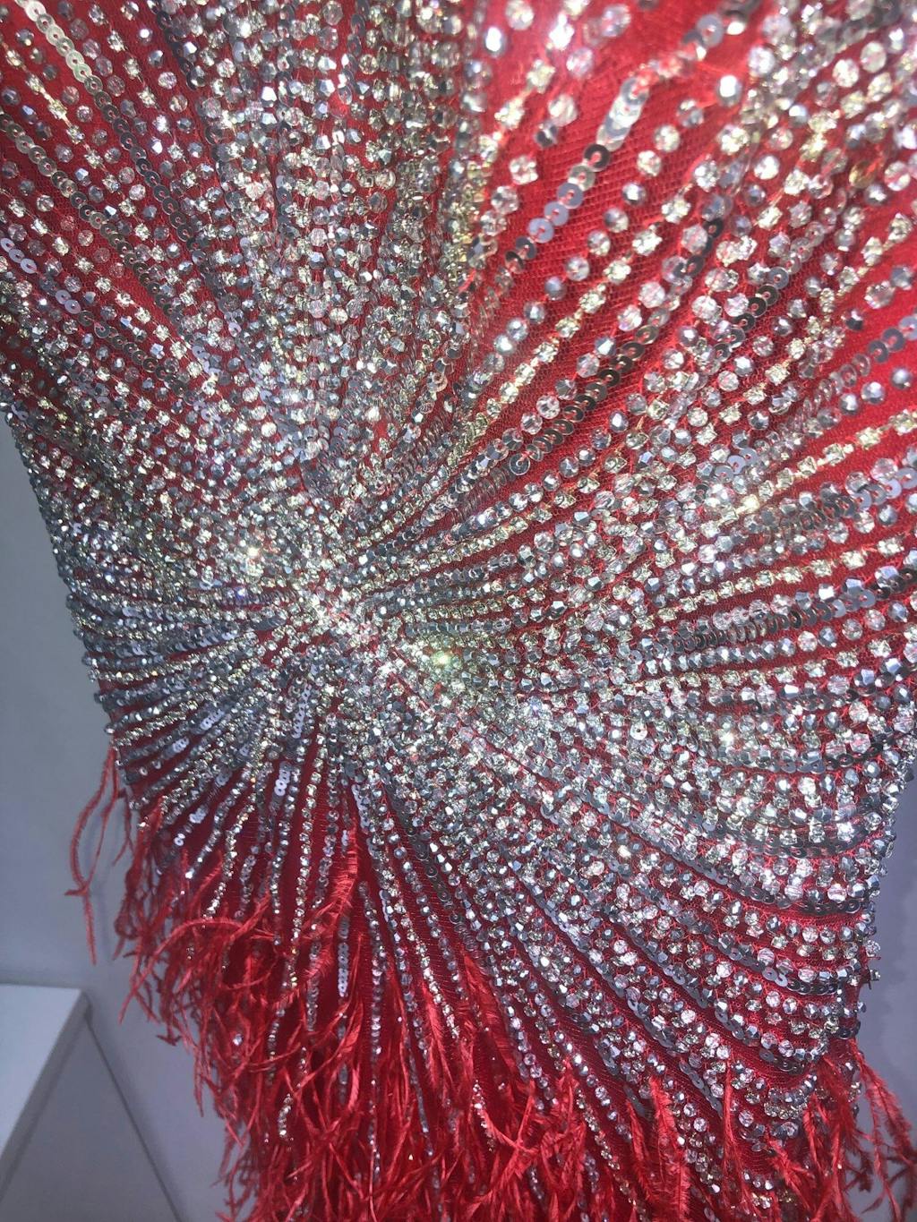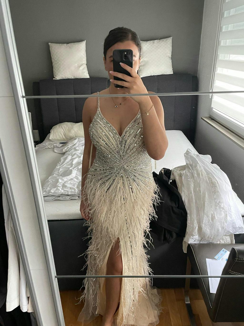 Luxuriöses Ballkleid mit Perlen und blauen Meerjungfrau-Federn SS004