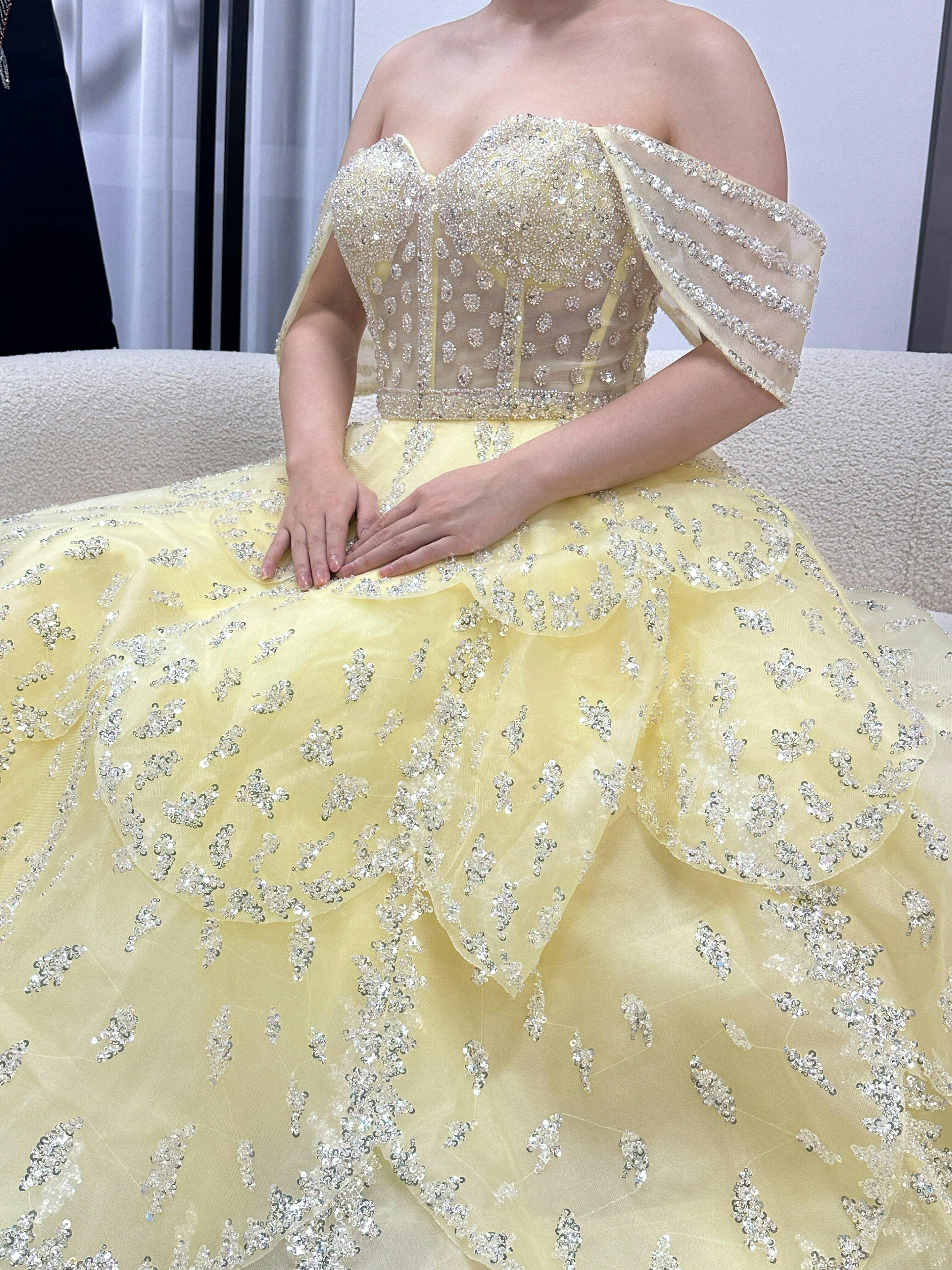 Romantic Pink Sequin Strapless Layered Evening Dress SS612