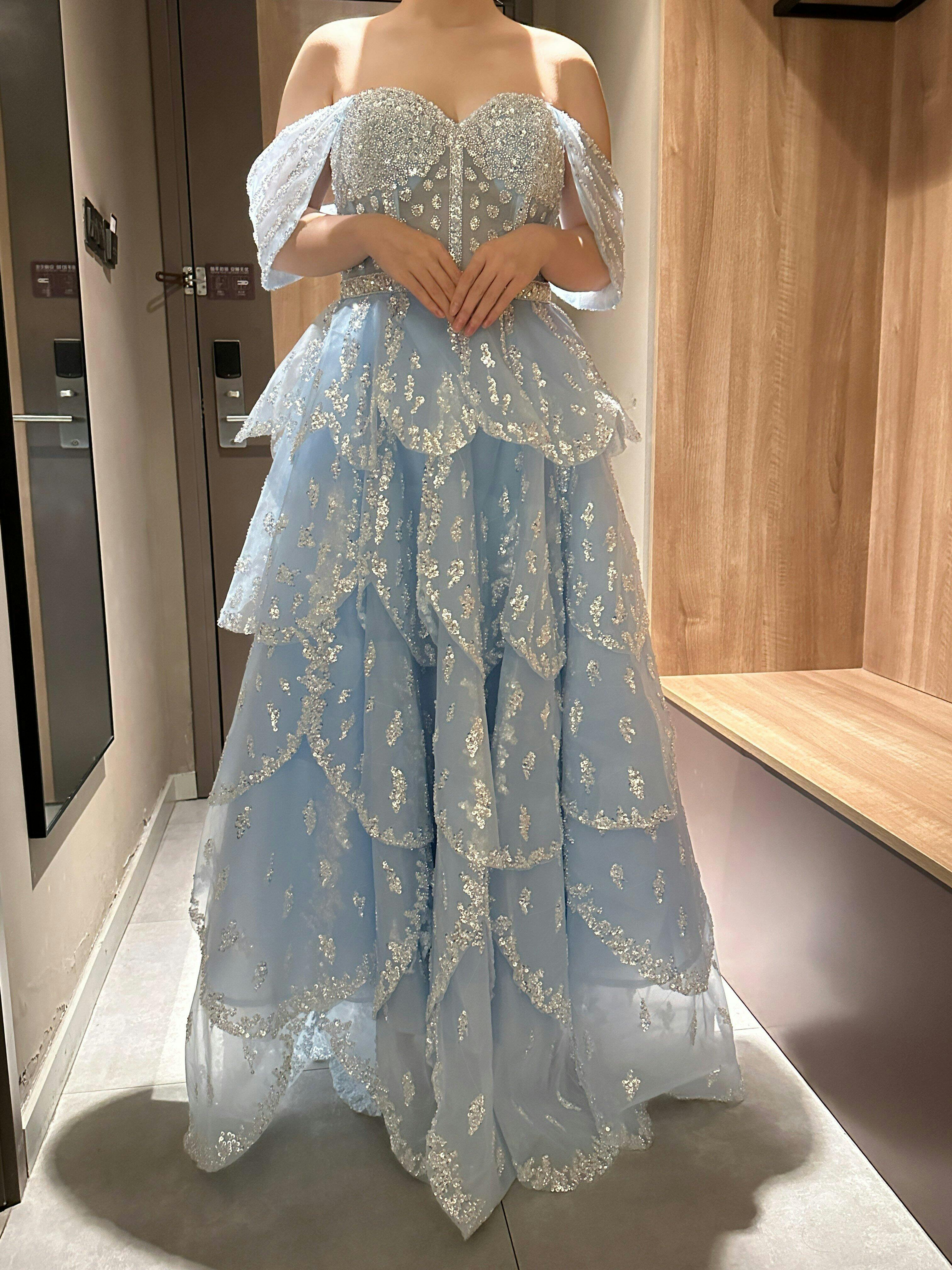 This Romantic Pink Sequin Strapless Layered Evening Dress blends elegance with a touch of sparkle. The strapless design highlights your neckline gracefully, while the layered skirt adds depth and movement for a captivating silhouette. Perfect for special occasions, its shimmering sequins catch the light subtly, ensuring you stand out with refined sophistication.