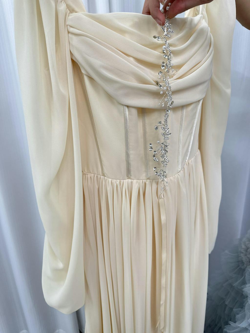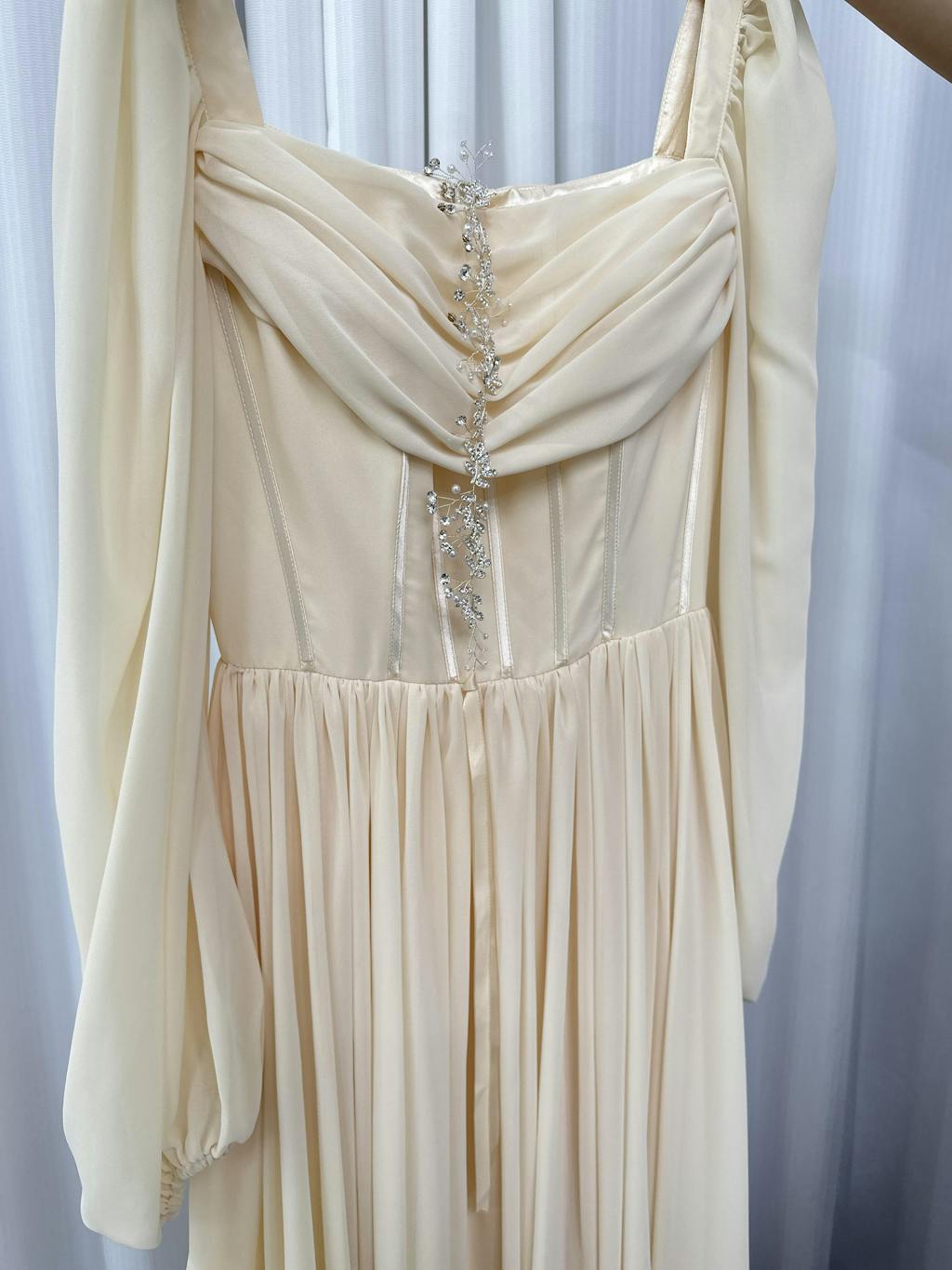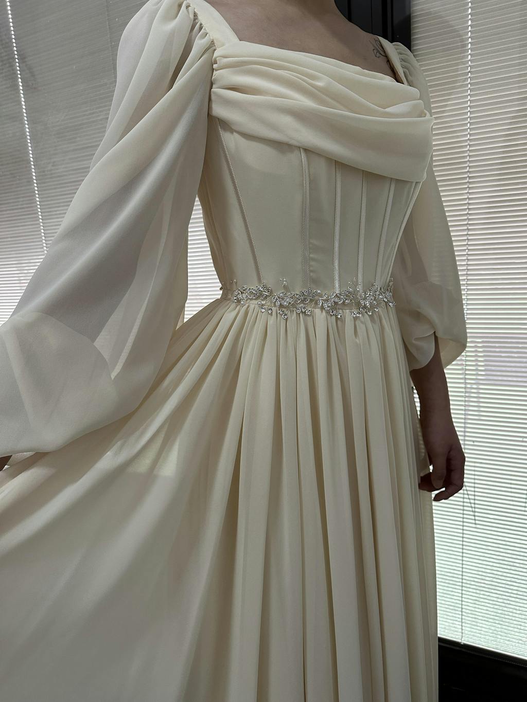 This dress is Made-To-Order. Whether you choose a standard size or custom measurements, our tailors craft each dress to order.