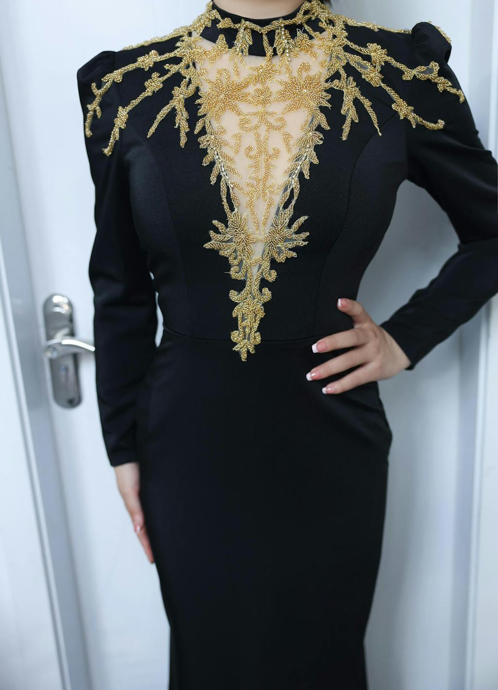 Sehen Sie umwerfend aus in unserem arabischen Abendkleid von Sharon Said! Dieses Meerjungfrauenkleid mit einer Schulter ist aus luxuriösem schwarzem Stoff gefertigt und hat einen stilvollen Cape-Ärmel. Dieses Kleid ist perfekt für Hochzeiten und Partys und verleiht Ihnen ein elegantes und glamouröses Gefühl. Ein Must-have für jeden besonderen Anlass.