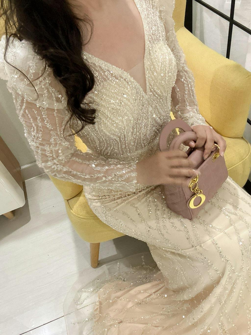 Dieses von Sharon Said fachmännisch gefertigte, marineblaue Meerjungfrauen-Abendkleid ist perfekt für Hochzeiten, formelle Veranstaltungen und Partys. Mit eleganten smaragdgrünen langen Ärmeln und einem atemberaubenden arabischen Design strahlt dieses Kleid Raffinesse und Stil aus. Setzen Sie mit SS099 ein Statement.