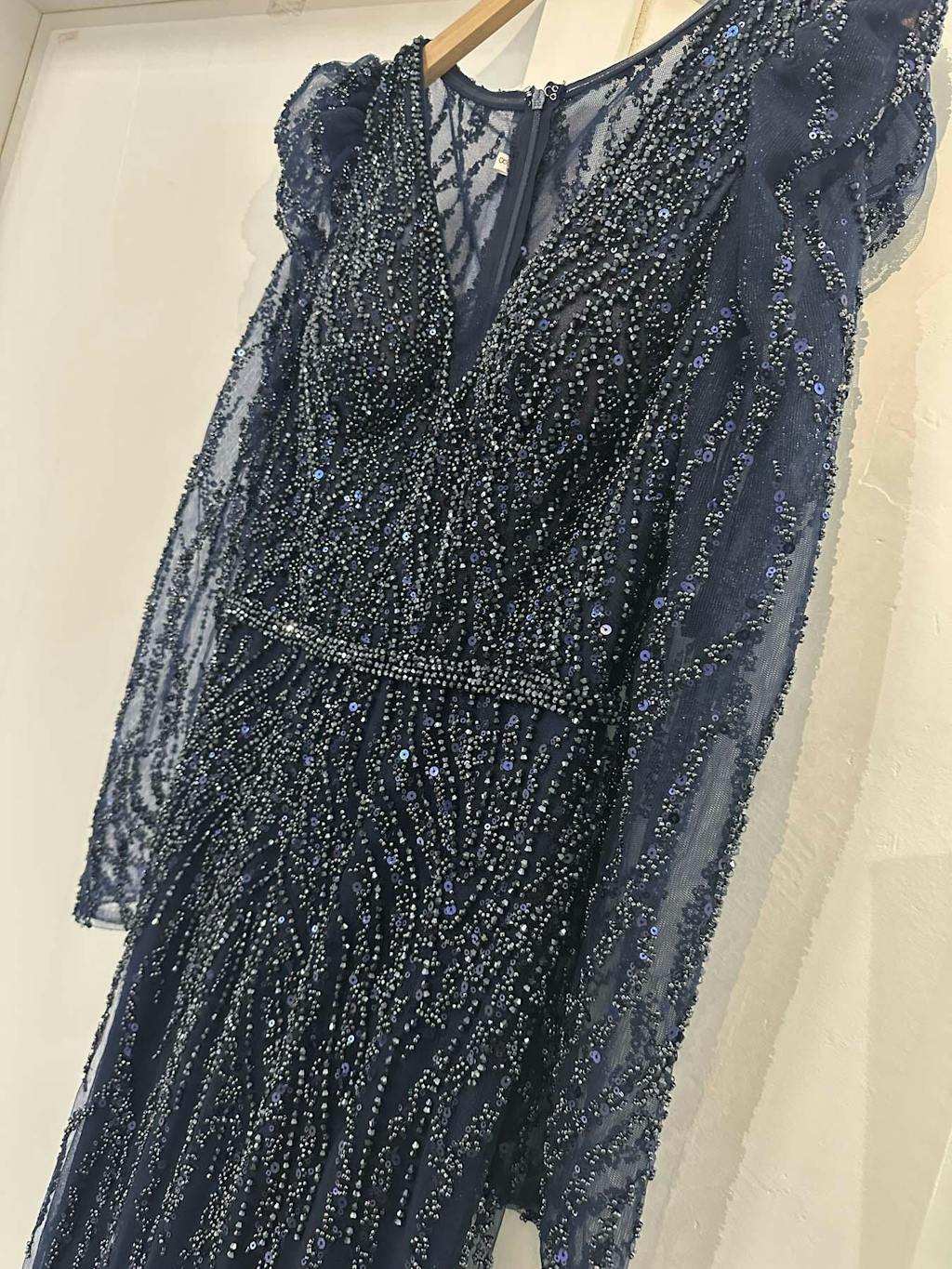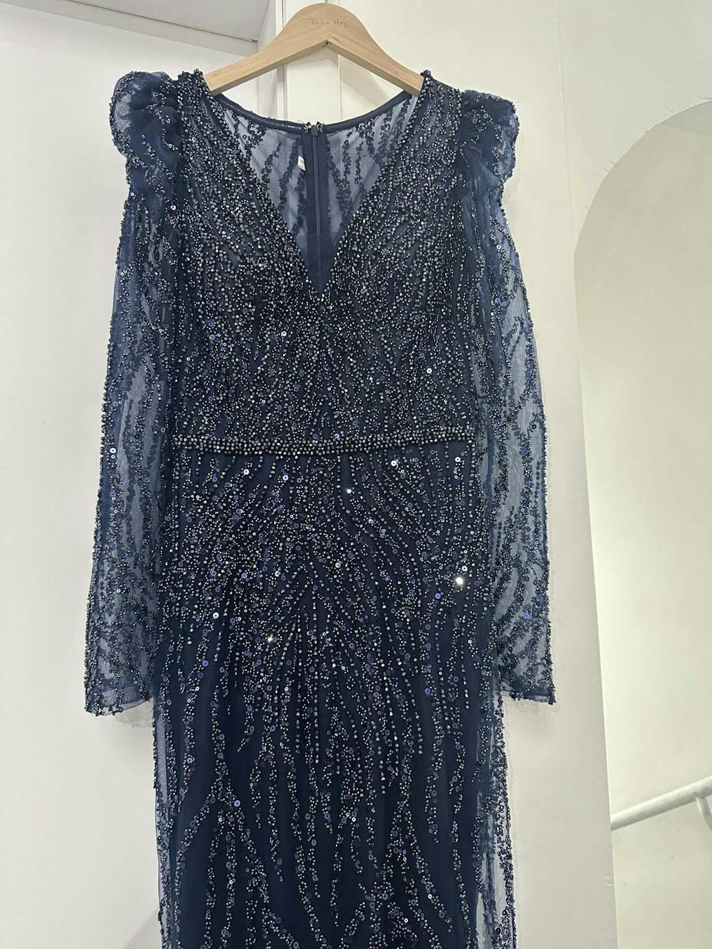 Elegantes Langarm-Abendkleid in Marineblau SS099