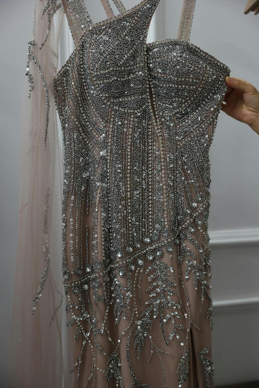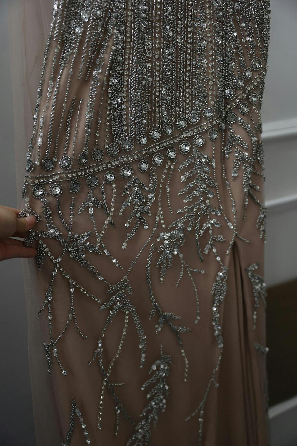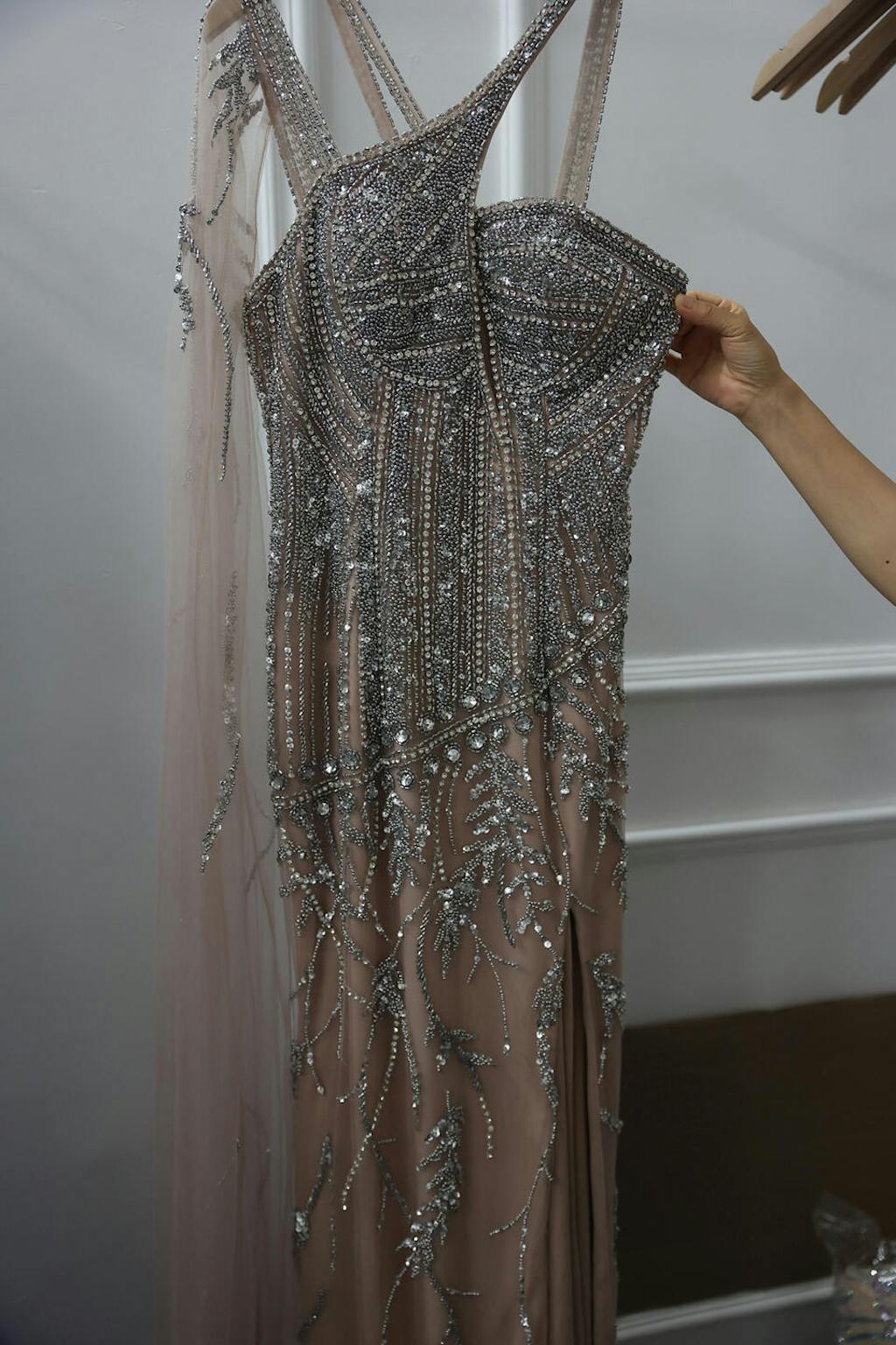 Luxury Beaded Nude One Shoulder Side Slit Evening Dress SS154