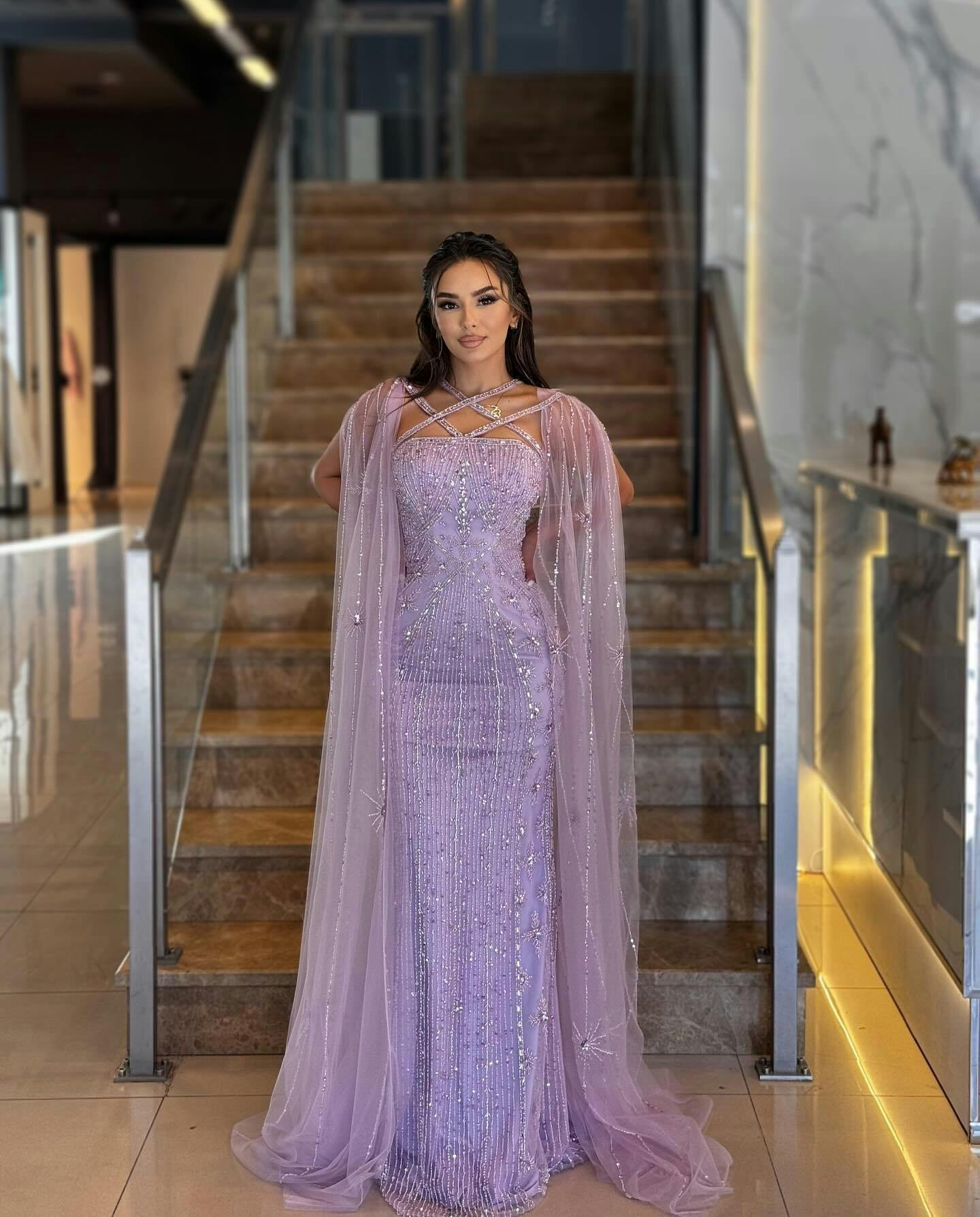 Disfrute del lujo y la elegancia con nuestro vestido de noche Sharon Said. Este vestido estilo sirena luce impresionantes tonos aguamarina y lila, un escote cruzado y delicadas mangas estilo capa. Perfecto para bodas y eventos formales, este vestido le hará sentir como una reina.