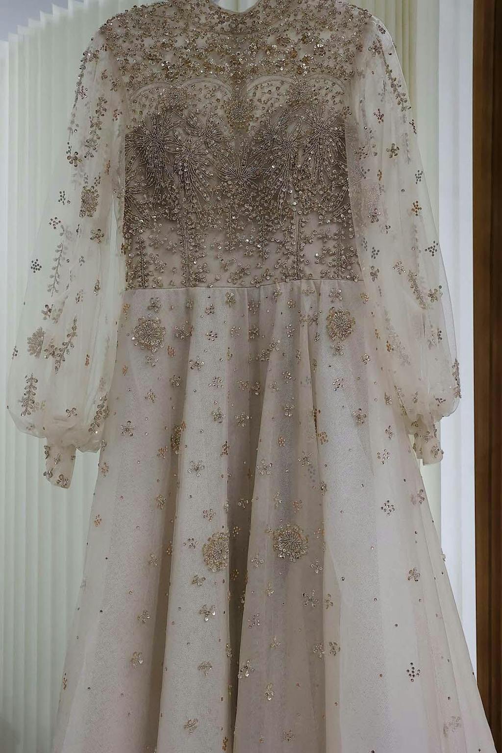 Discover the epitome of luxury with our Elegant Champagne Evening Dress. Exquisite Arabic design meets sophistication in this stunning long-sleeved dress, perfect for weddings and formal events. Elevate your style with this opulent piece that exudes elegance and grace.