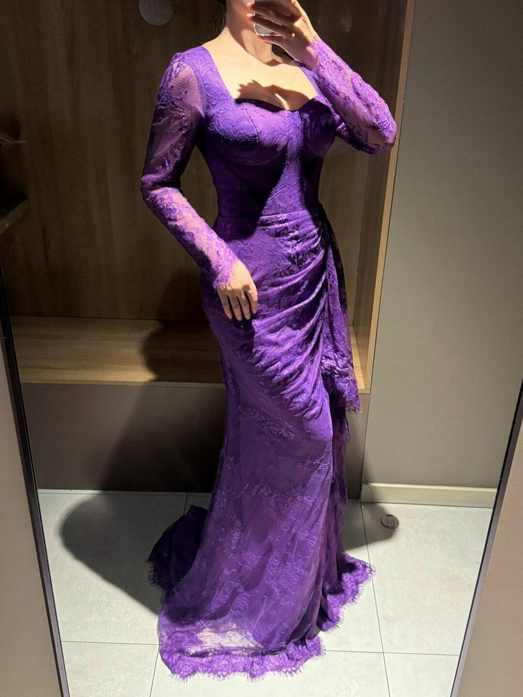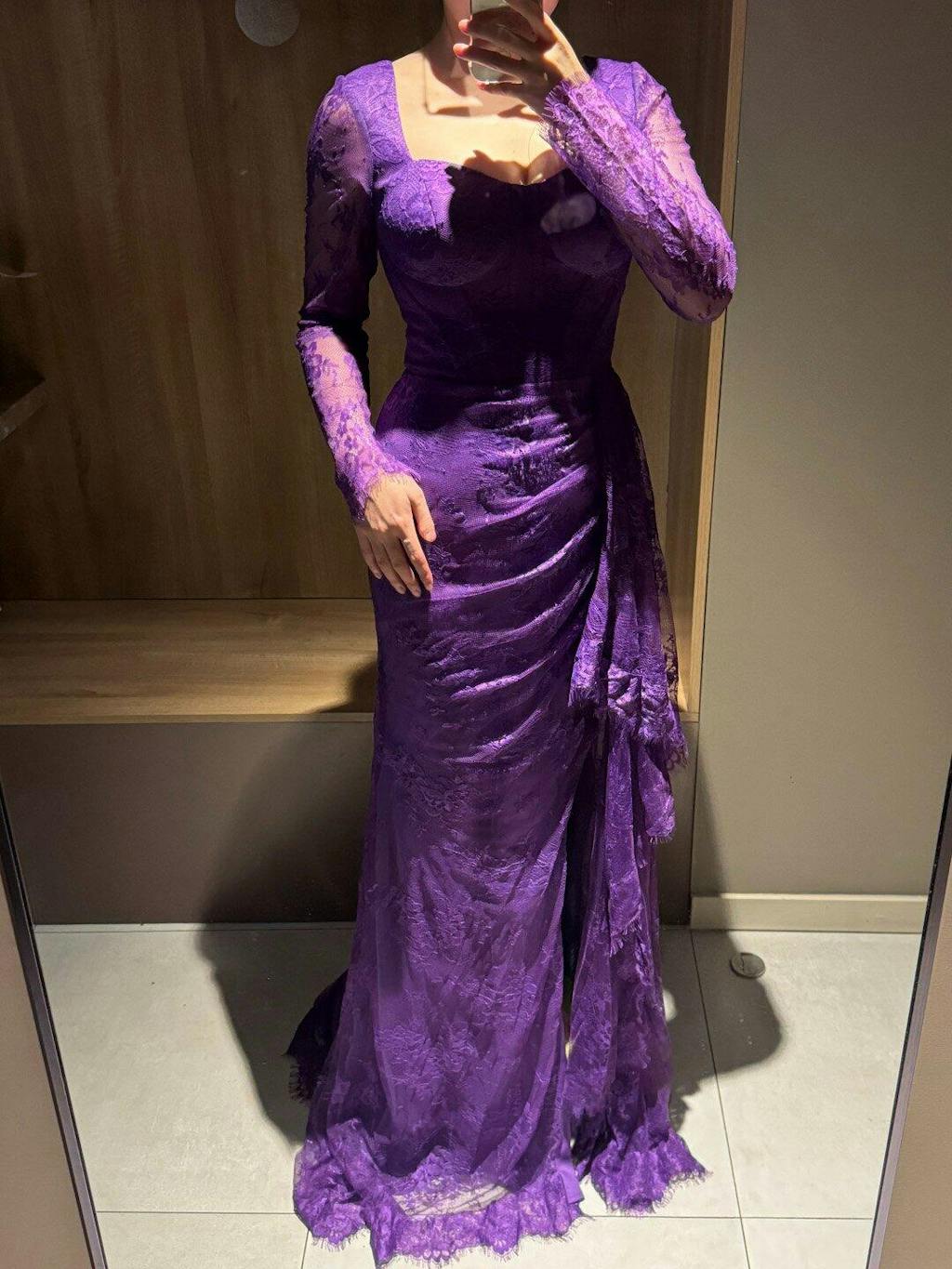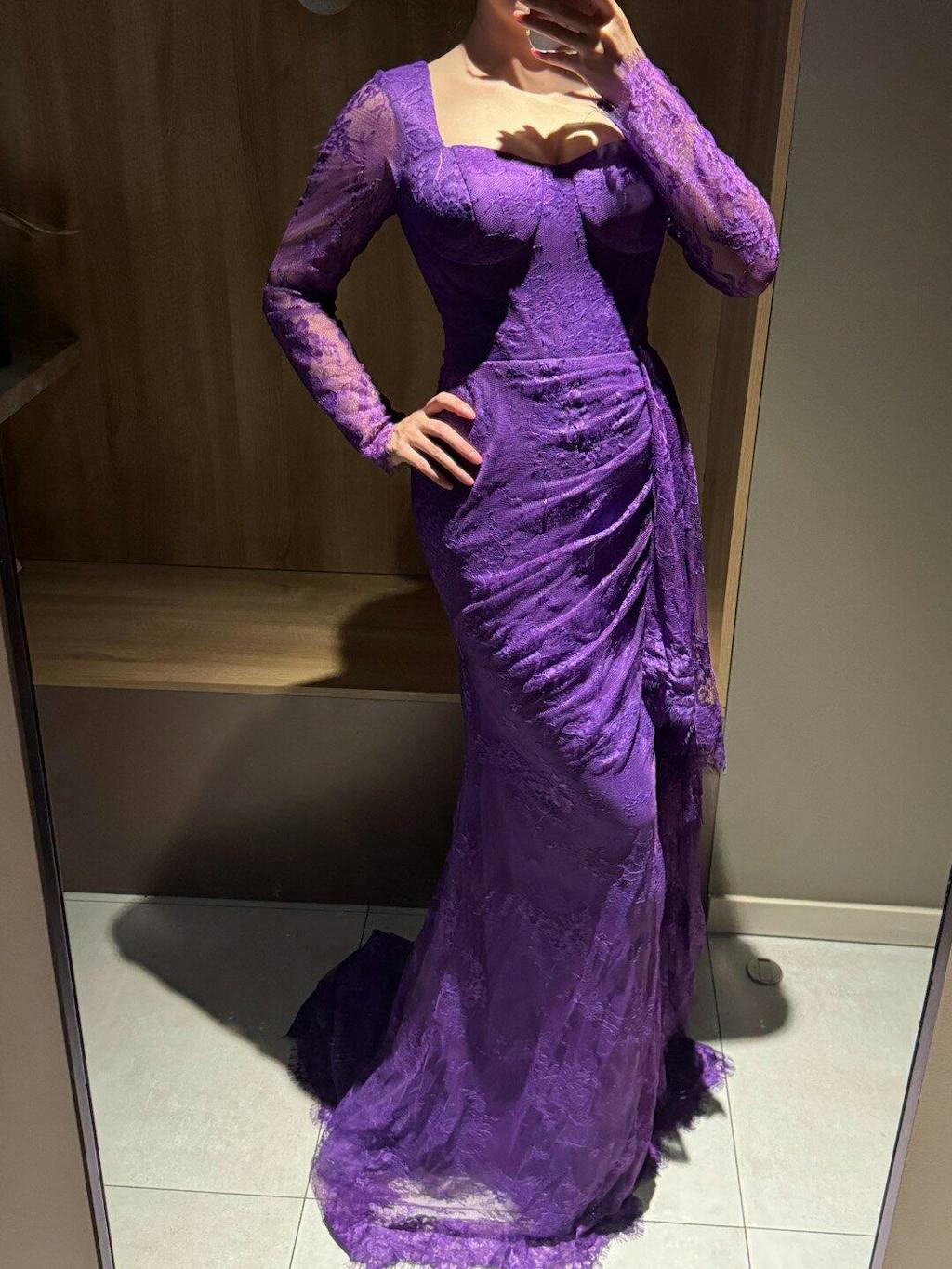 Experience elegance and sophistication with our Elegant Purple Lace Evening Dress SF075. The intricate lace design and long sleeves add a touch of romance, making you feel confident and glamorous at any evening event. Stand out and make a statement with this stunning dress.