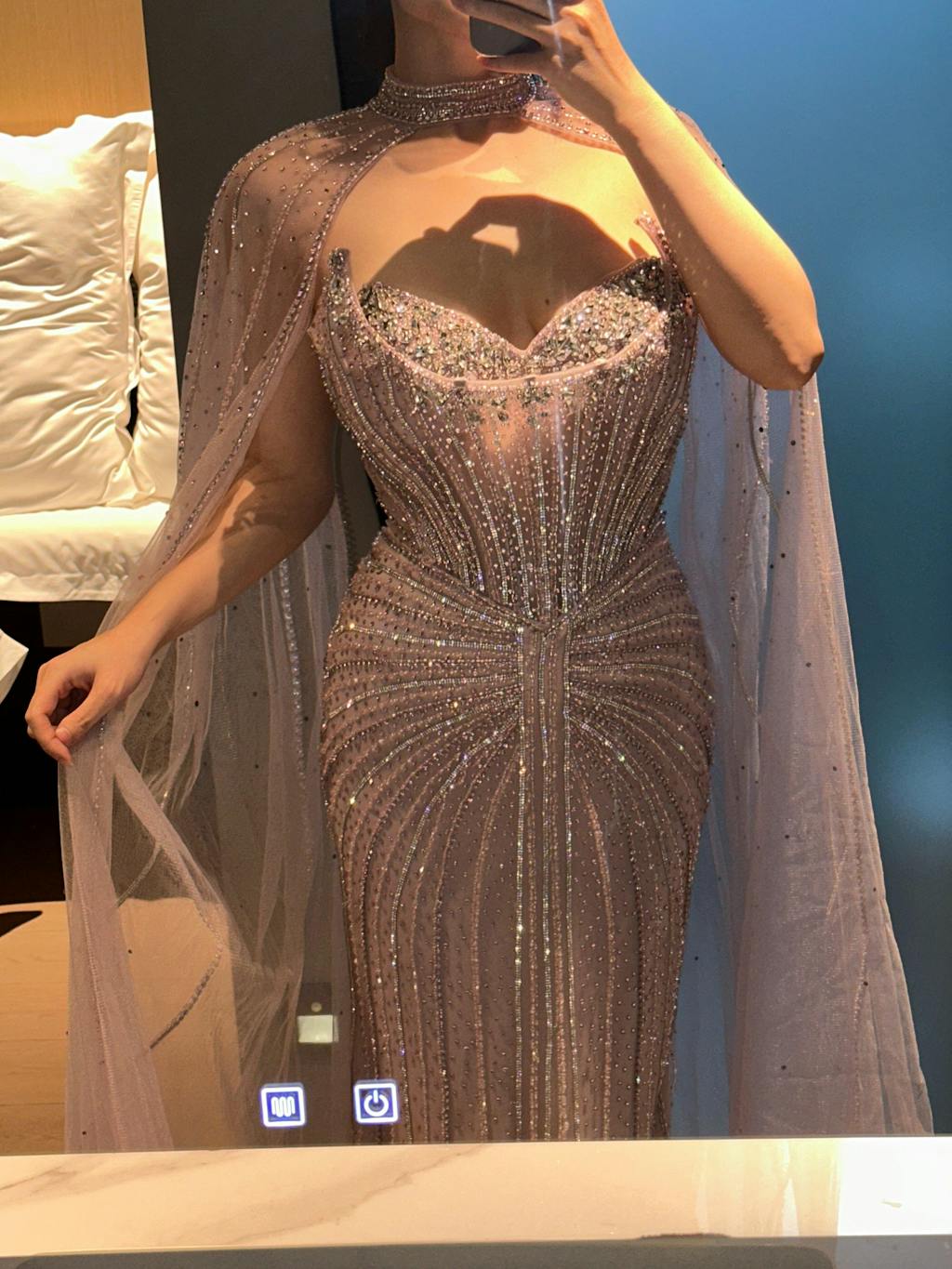 Luxury Mermaid Beaded Evening Dress with Cape SS156