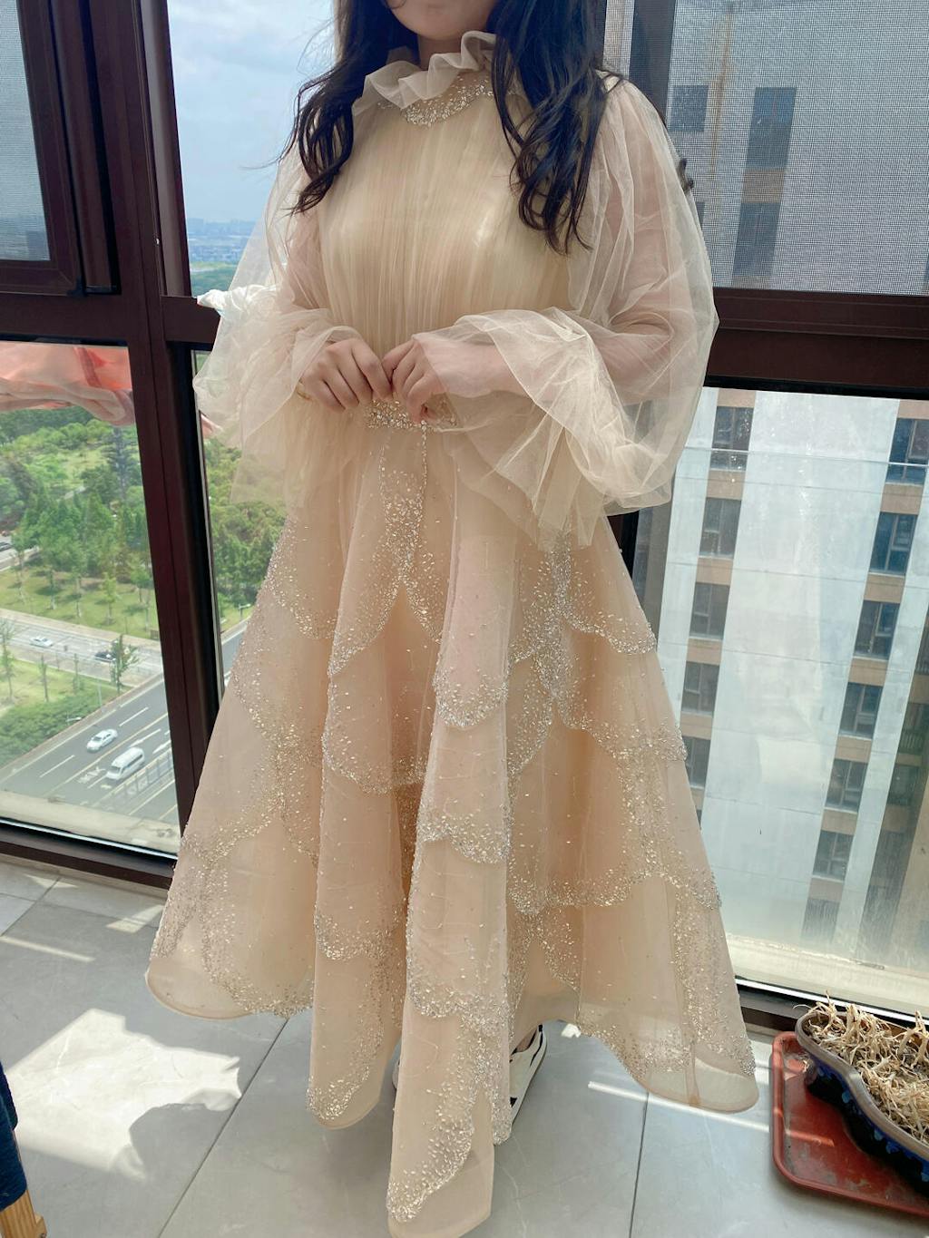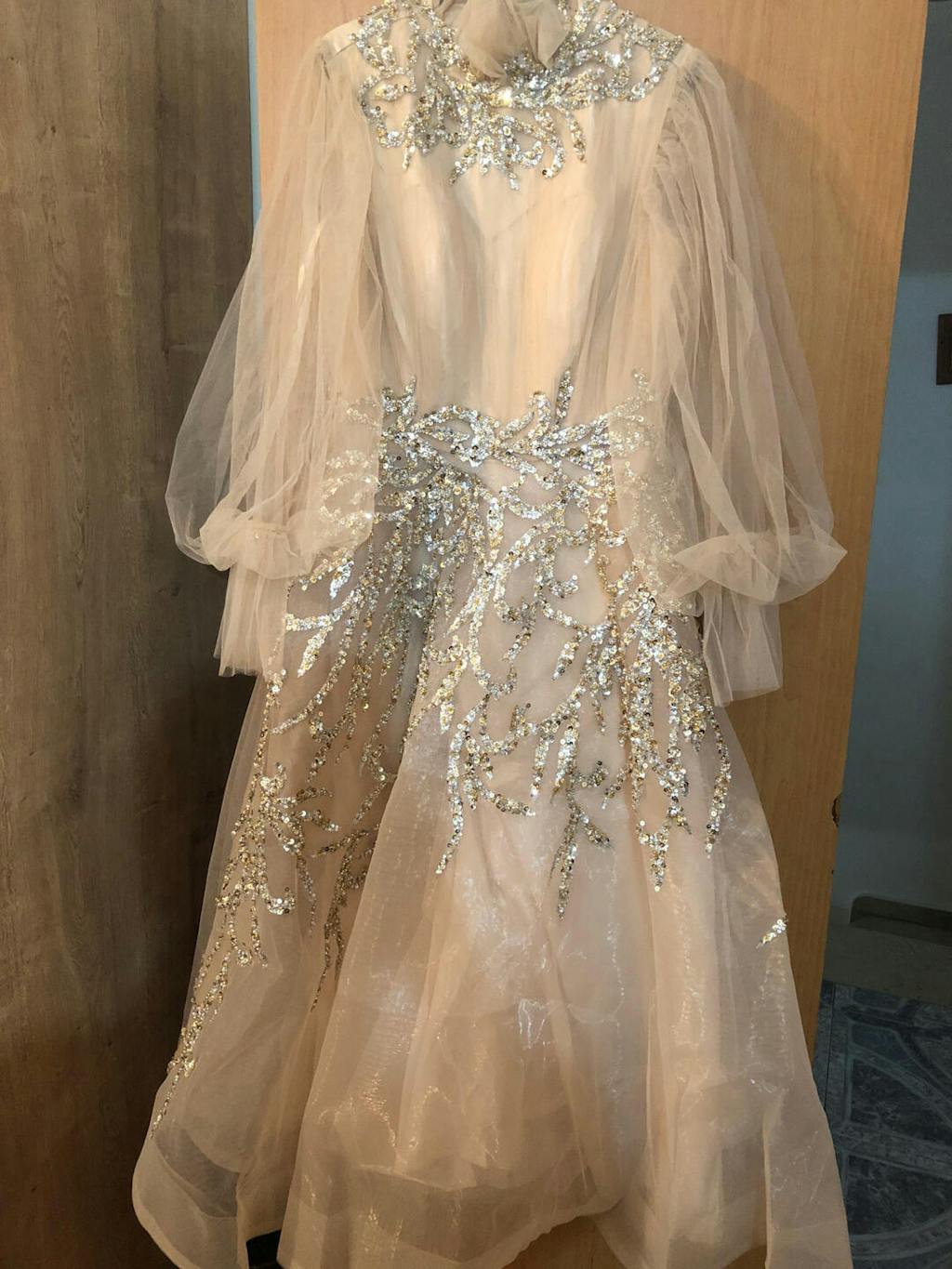 Luxury Champagne Long Sleeve Muslim Evening Dress SS496