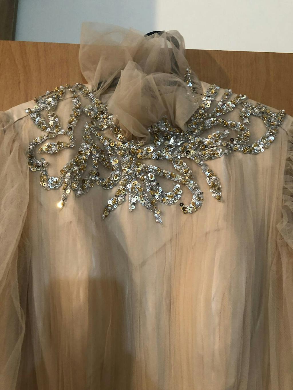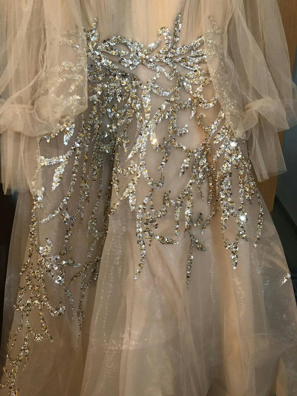 Experience luxurious elegance with the Sharon Said Champagne Evening Dress. With long sleeves and a midi length, this dress is perfect for formal occasions and wedding parties. The Arabic-inspired design adds a touch of cultural beauty, making you stand out from the crowd. Expertly crafted for a comfortable and stylish fit.