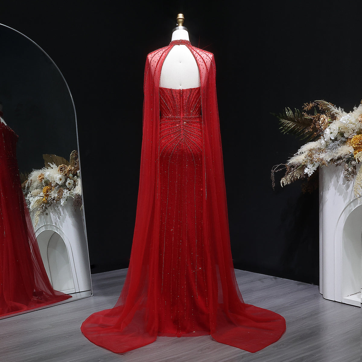 Luxury Mermaid Beaded Evening Dress with Cape SS156