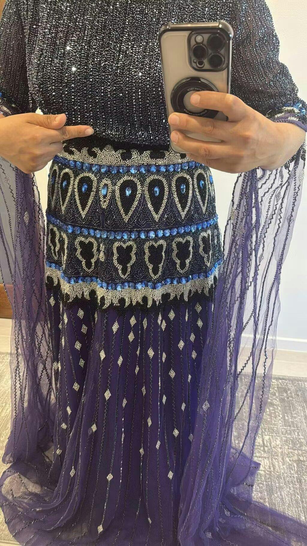 Elevate your evening elegance with this stunning purple gown, meticulously crafted for the discerning woman. Luxurious beading and shimmering crystals cascade across the silhouette, creating an enchanting play of light with every movement. The refined long sleeves offer graceful coverage while maintaining an air of timeless sophistication. Perfect for galas, formal celebrations, and unforgettable nights, this dress embodies understated glamour and impeccable craftsmanship. Make a memorable impression in a gown designed for those who appreciate true luxury.