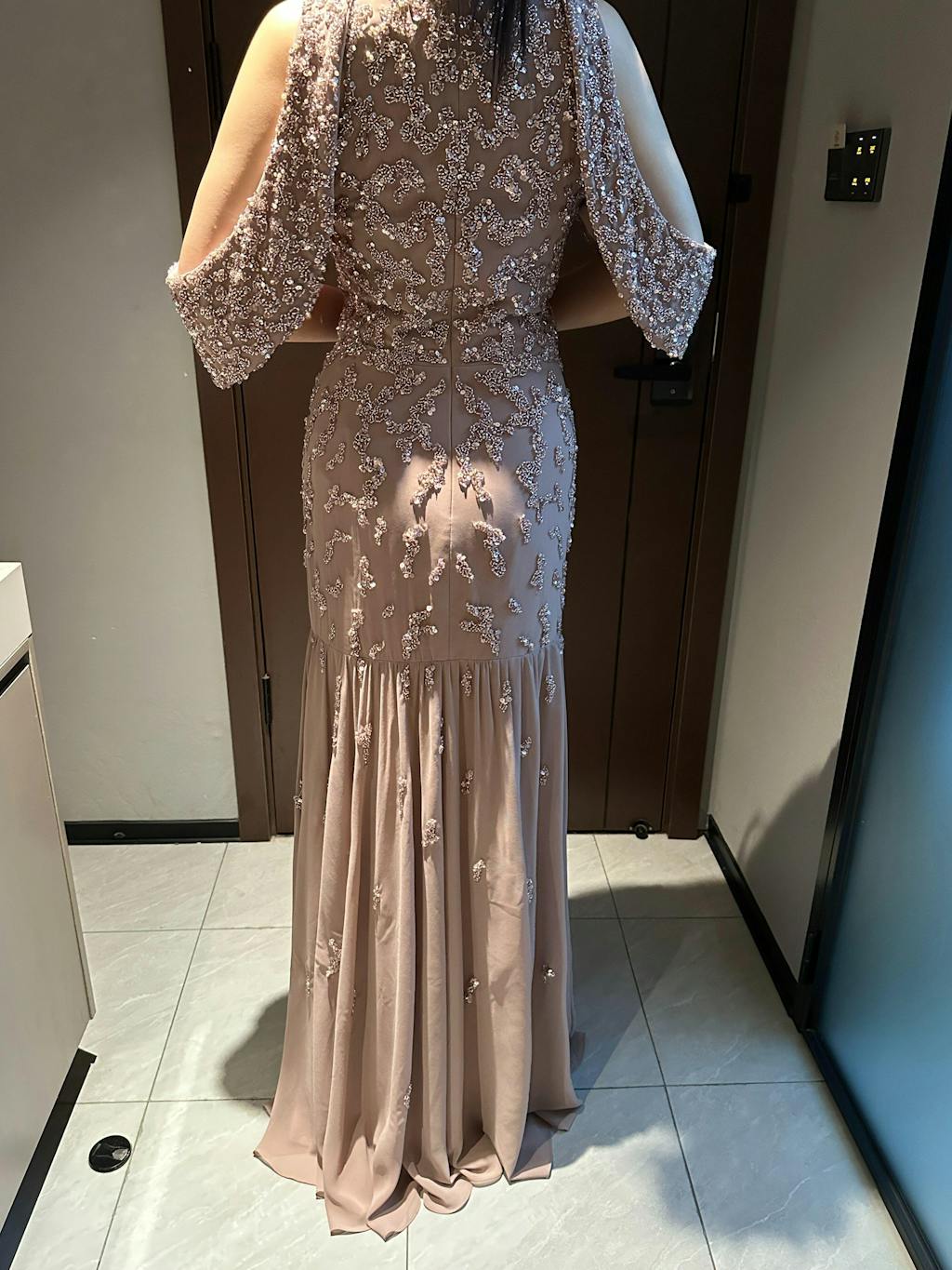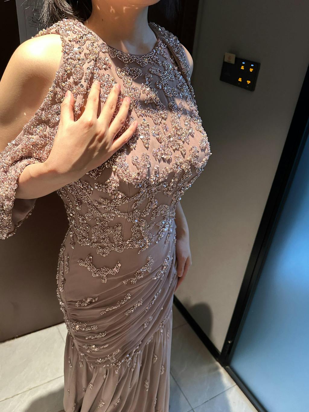 Elevate your evening elegance with this Luxury Beaded Mauve Snap Sleeves Evening Dress. Featuring intricate beadwork and uniquely designed snap sleeves, this dress offers a refined silhouette in a soft mauve hue. Perfect for formal occasions, it combines timeless sophistication with modern detailing to ensure you stand out gracefully.