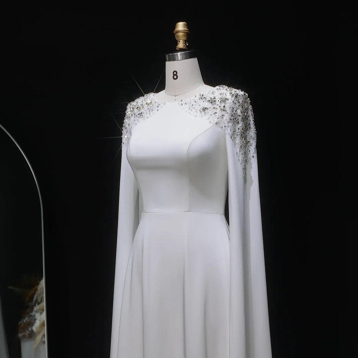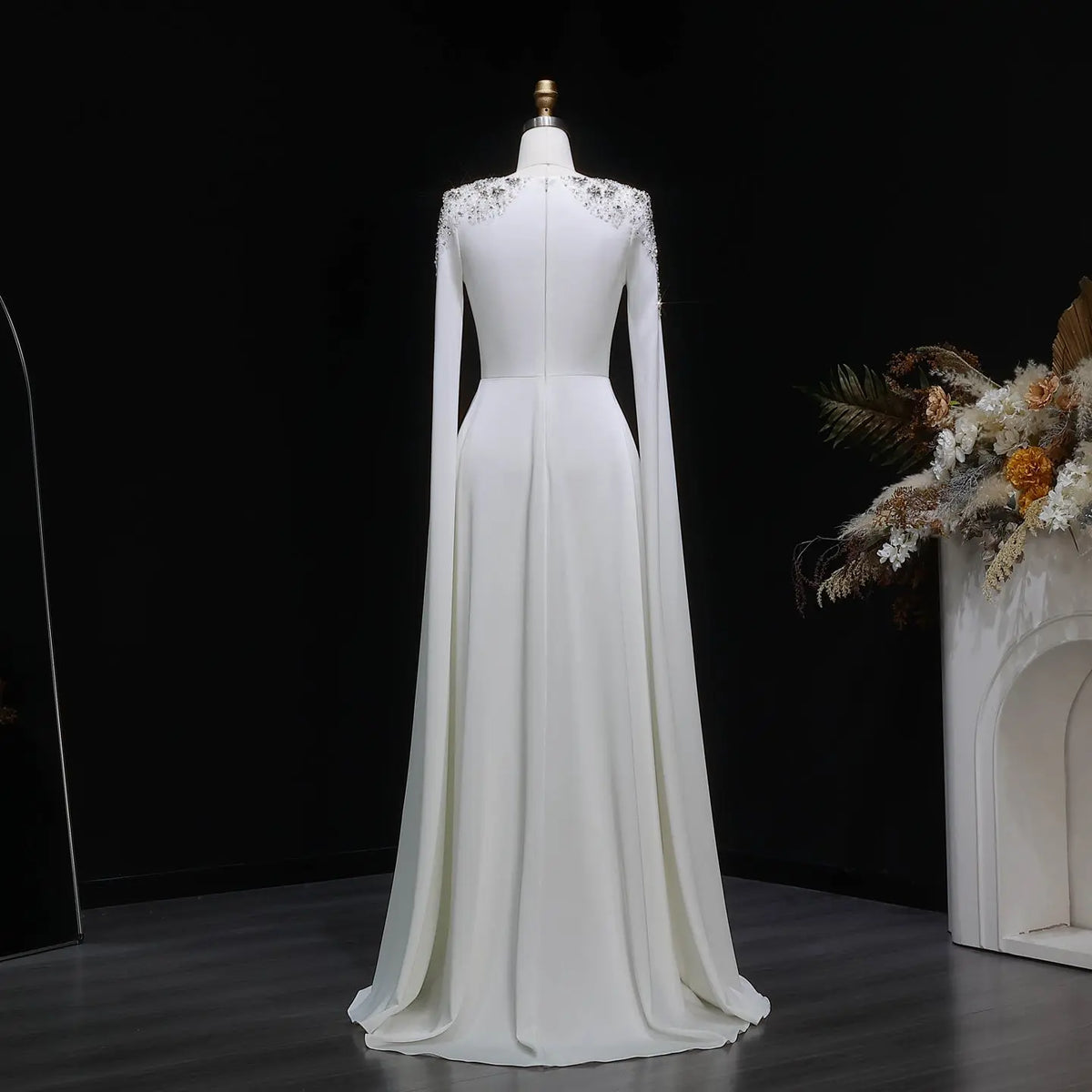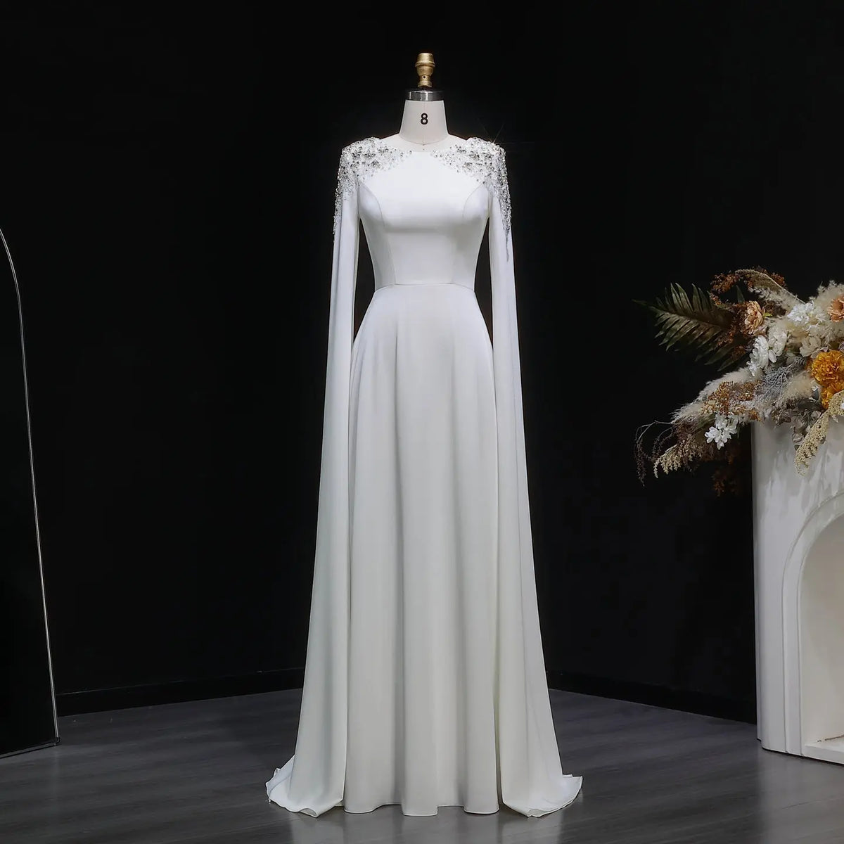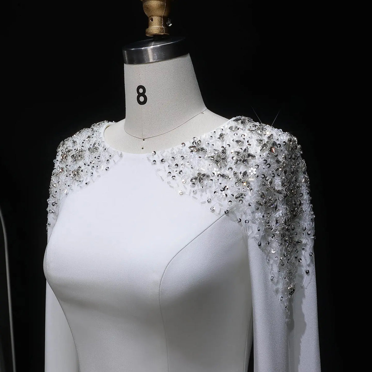 Elegant White Mermaid Evening Dress with Cape Sleeves SF280