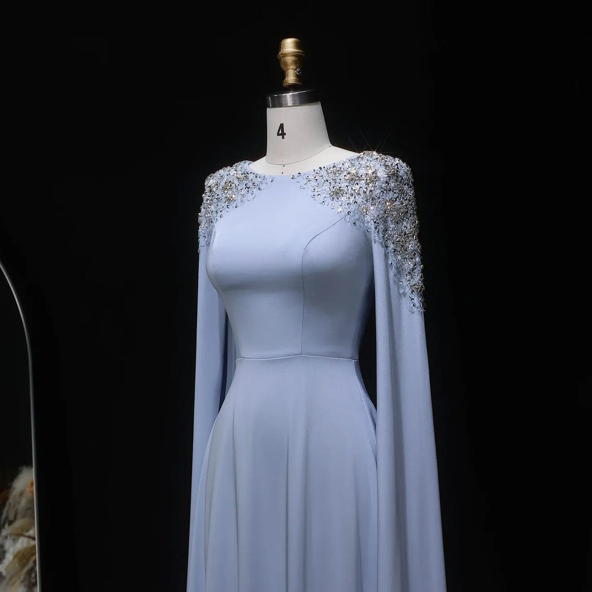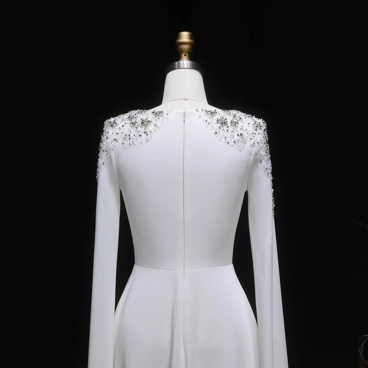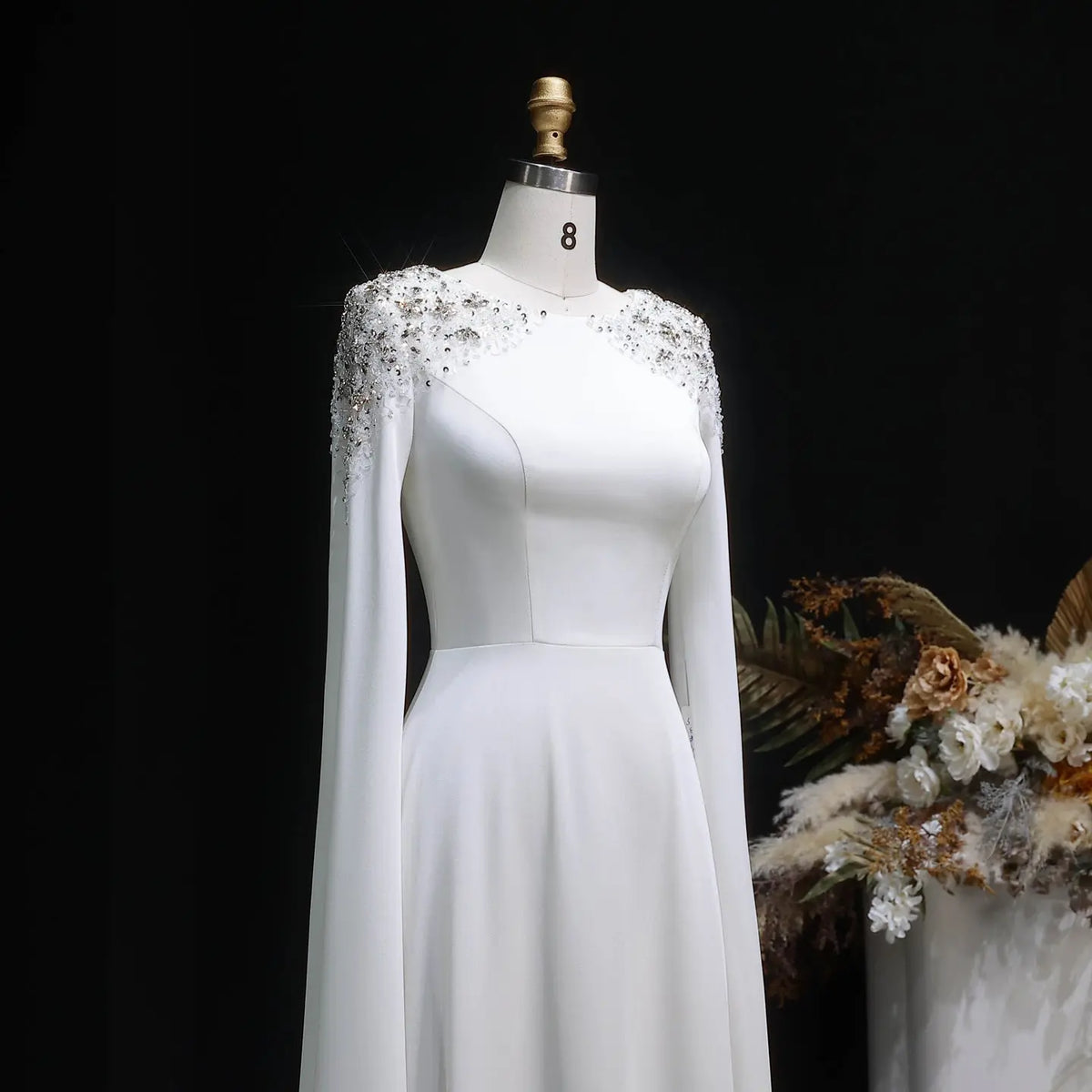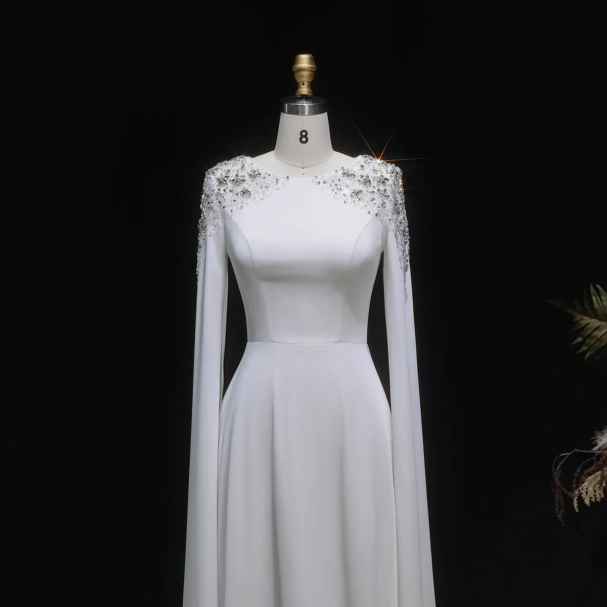 Elegant White Mermaid Evening Dress with Cape Sleeves SF280