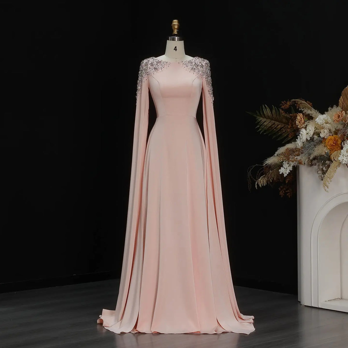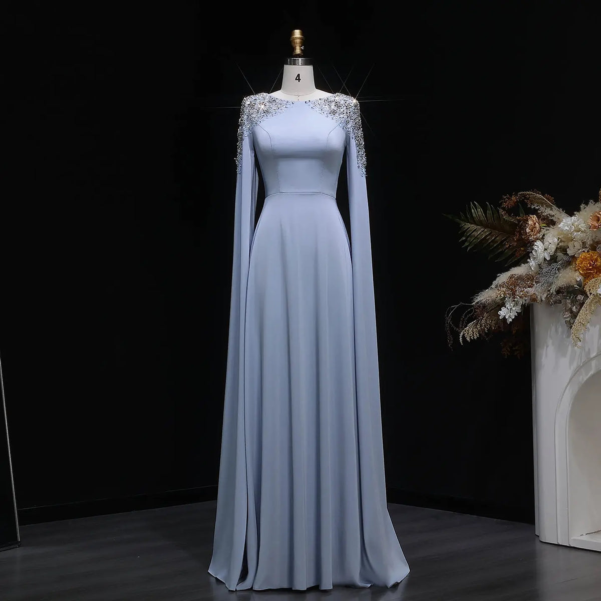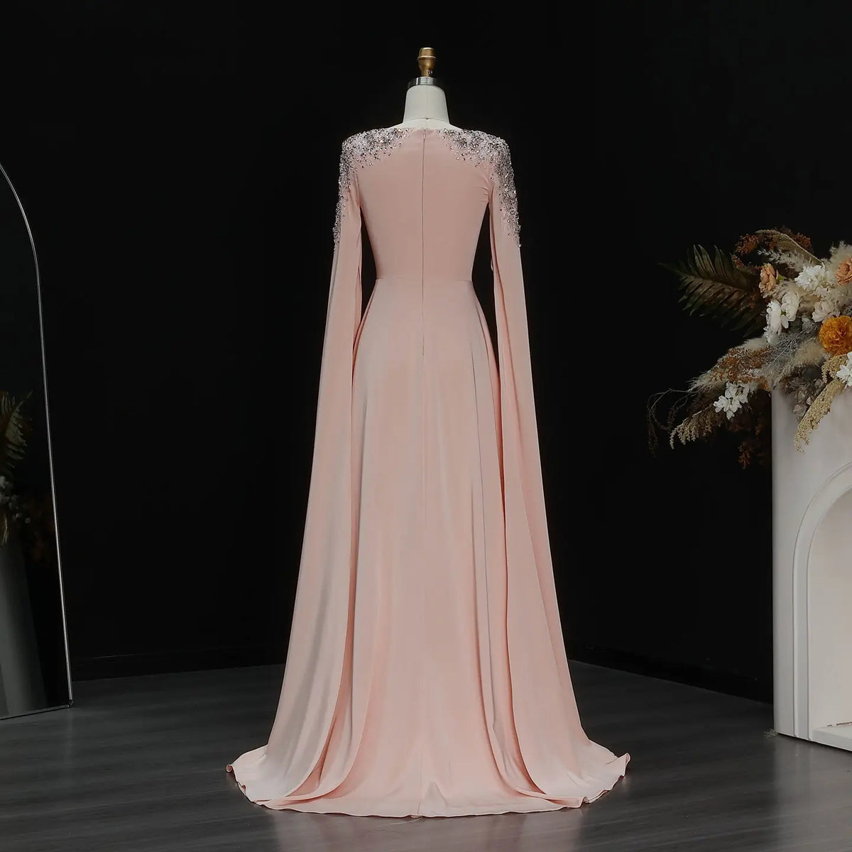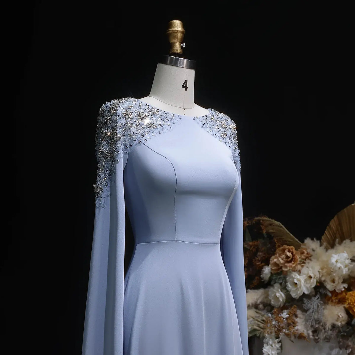 Elegant White Mermaid Evening Dress with Cape Sleeves SF280