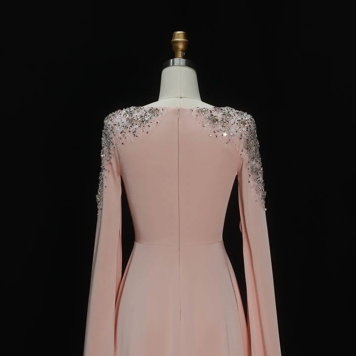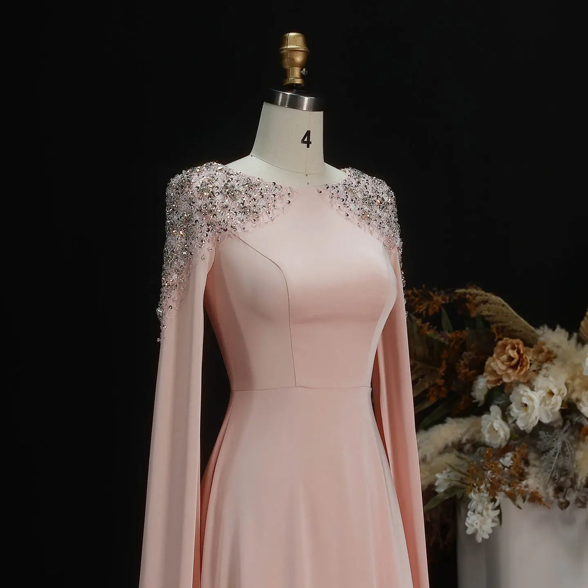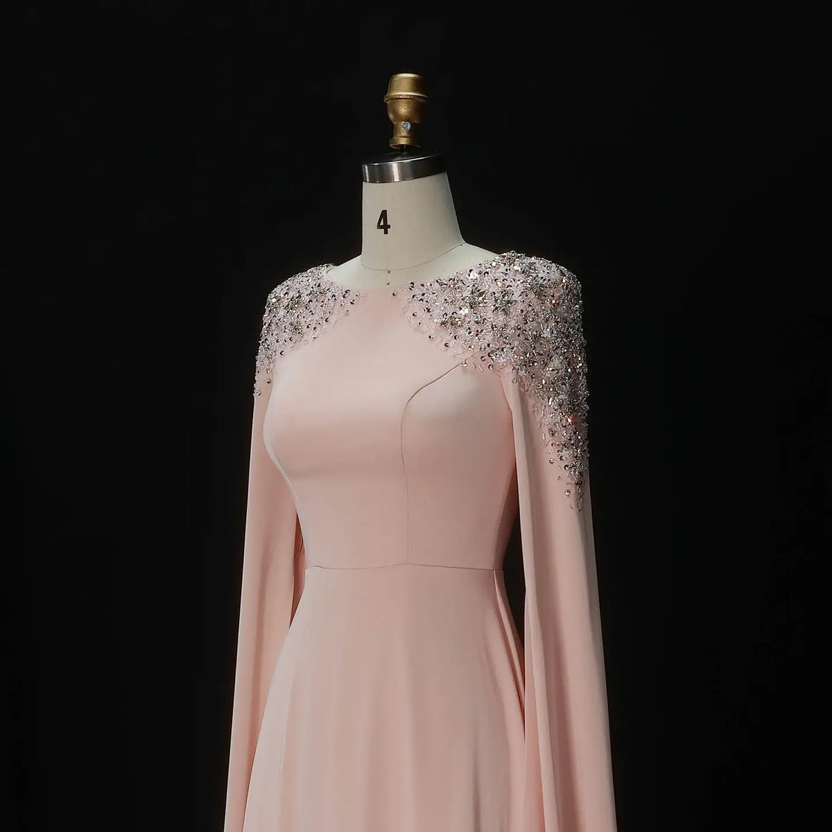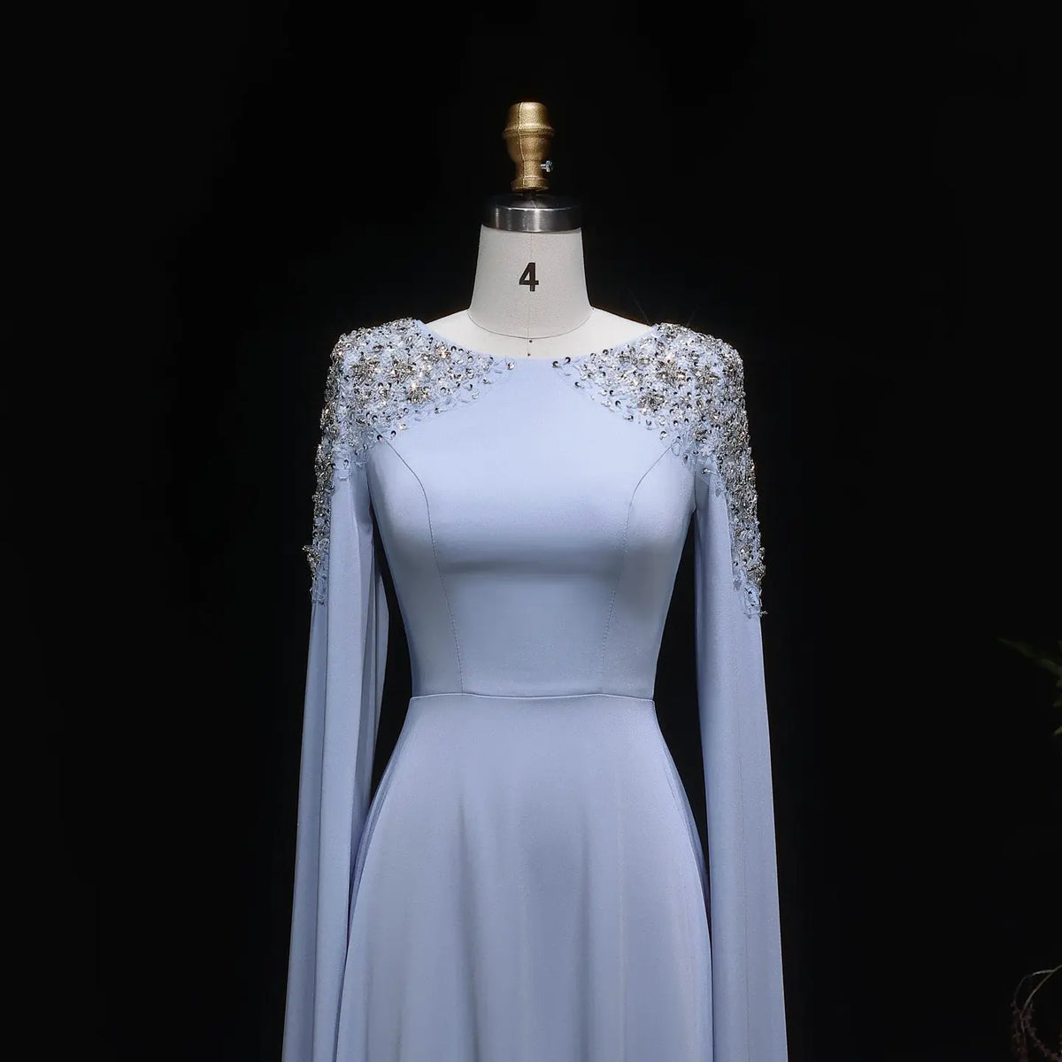 Elegant White Mermaid Evening Dress with Cape Sleeves SF280