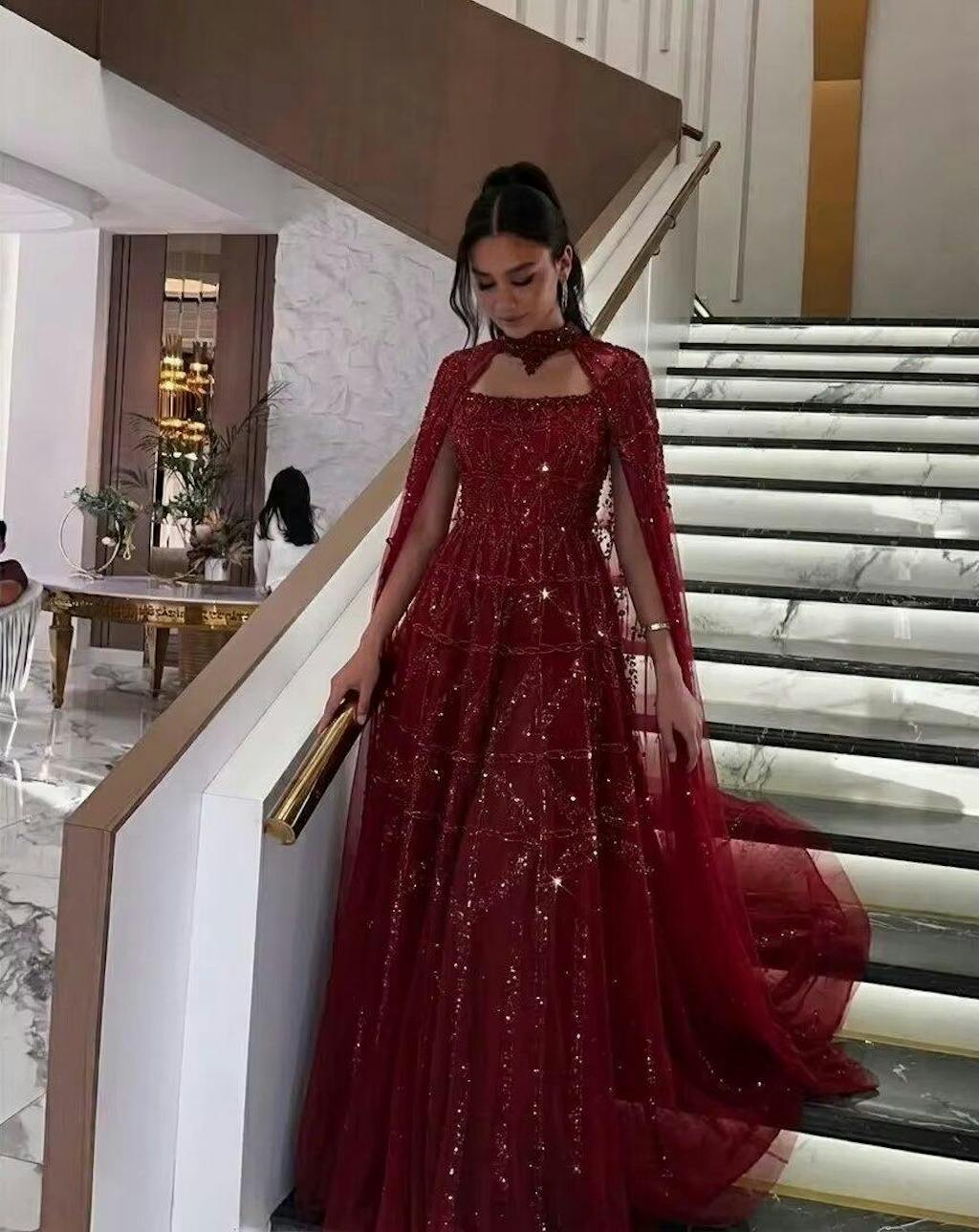 Cape flows beautifully and feels light. Very striking when walking, overall look stunning, friends loved it.