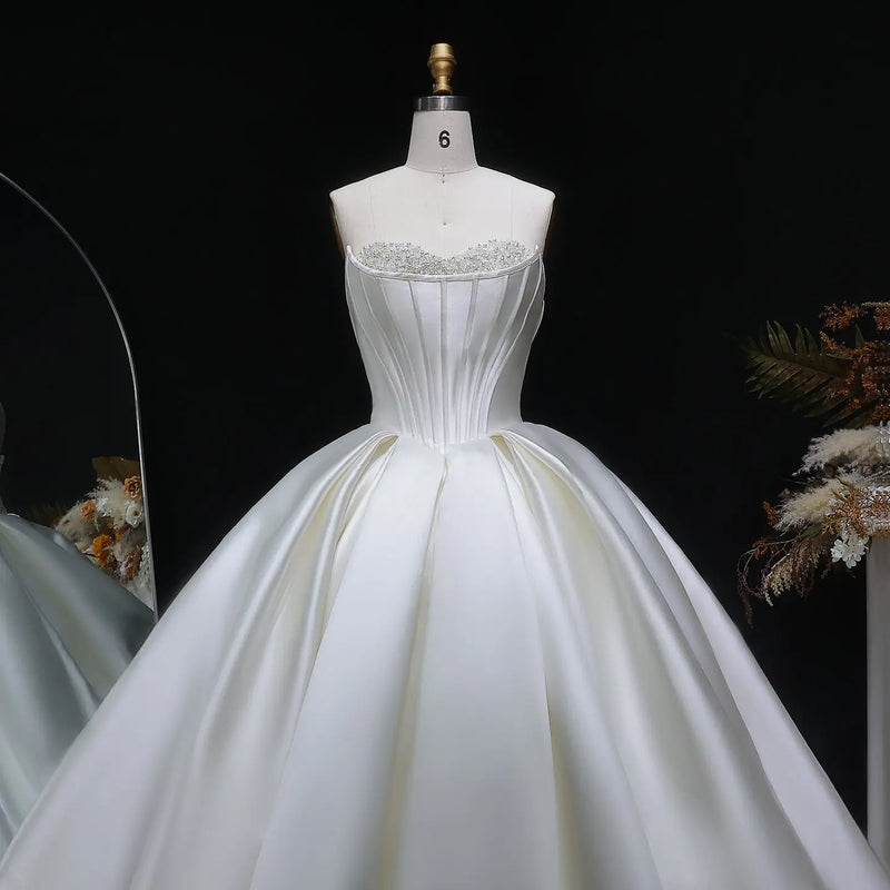 Luxury Sweetheart Satin Ball Gown Wedding Dress RS027