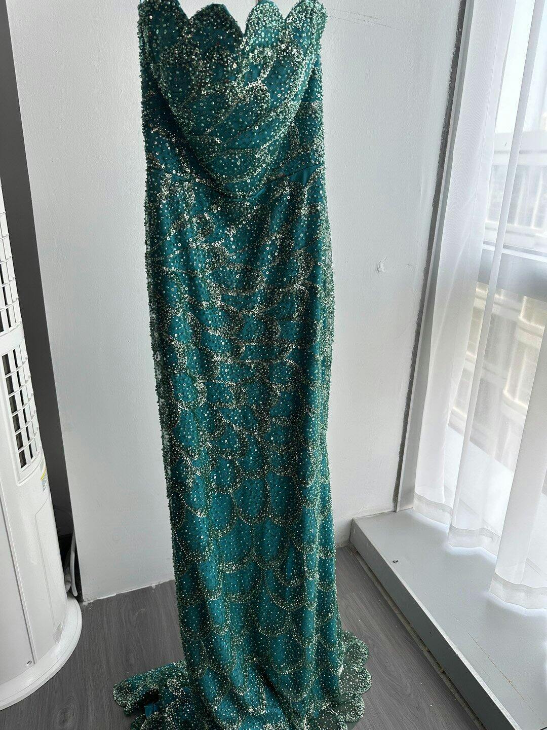 This emerald green dress is a showstopper! The strapless design is so flattering, and the fabric feels luxurious.