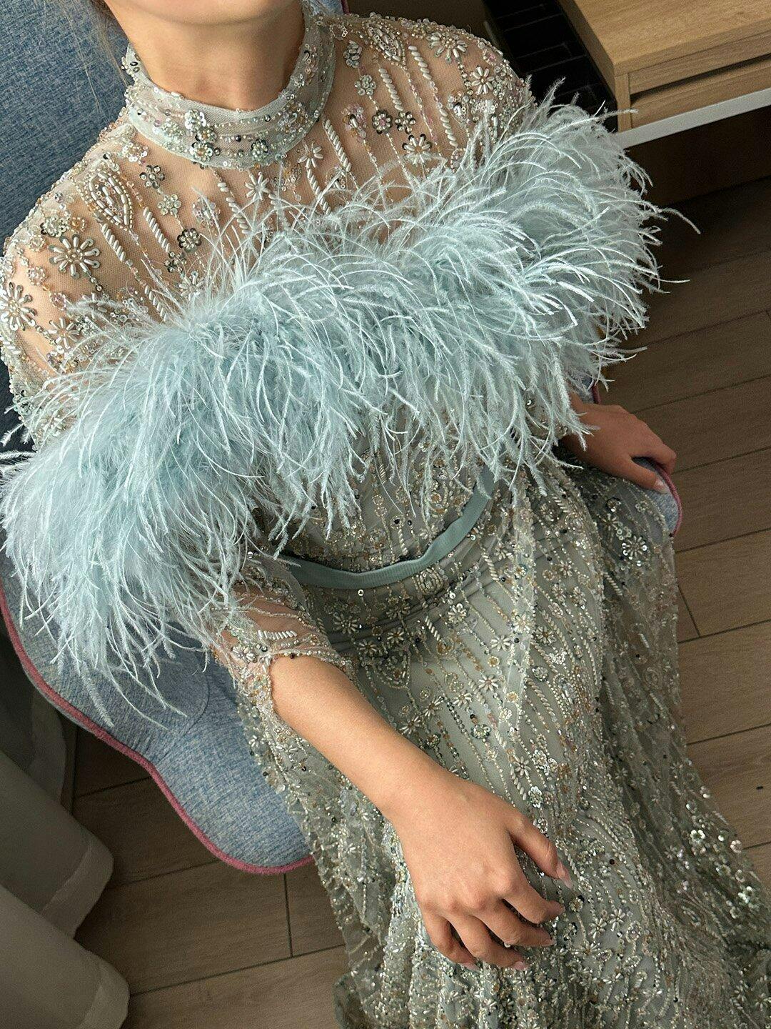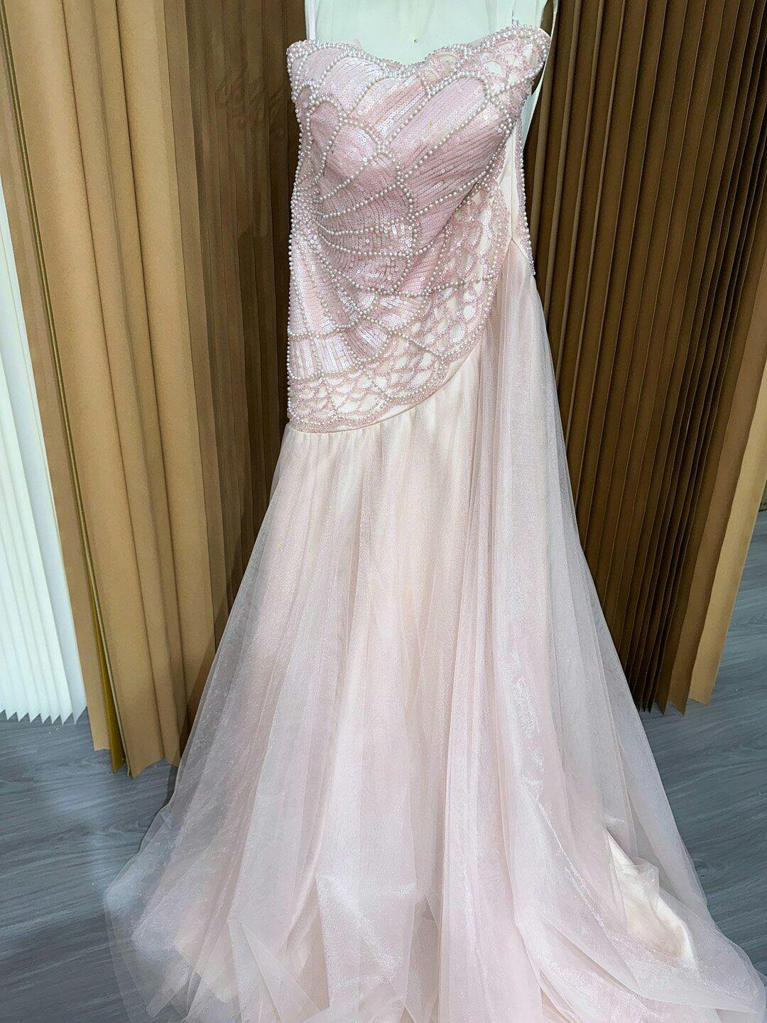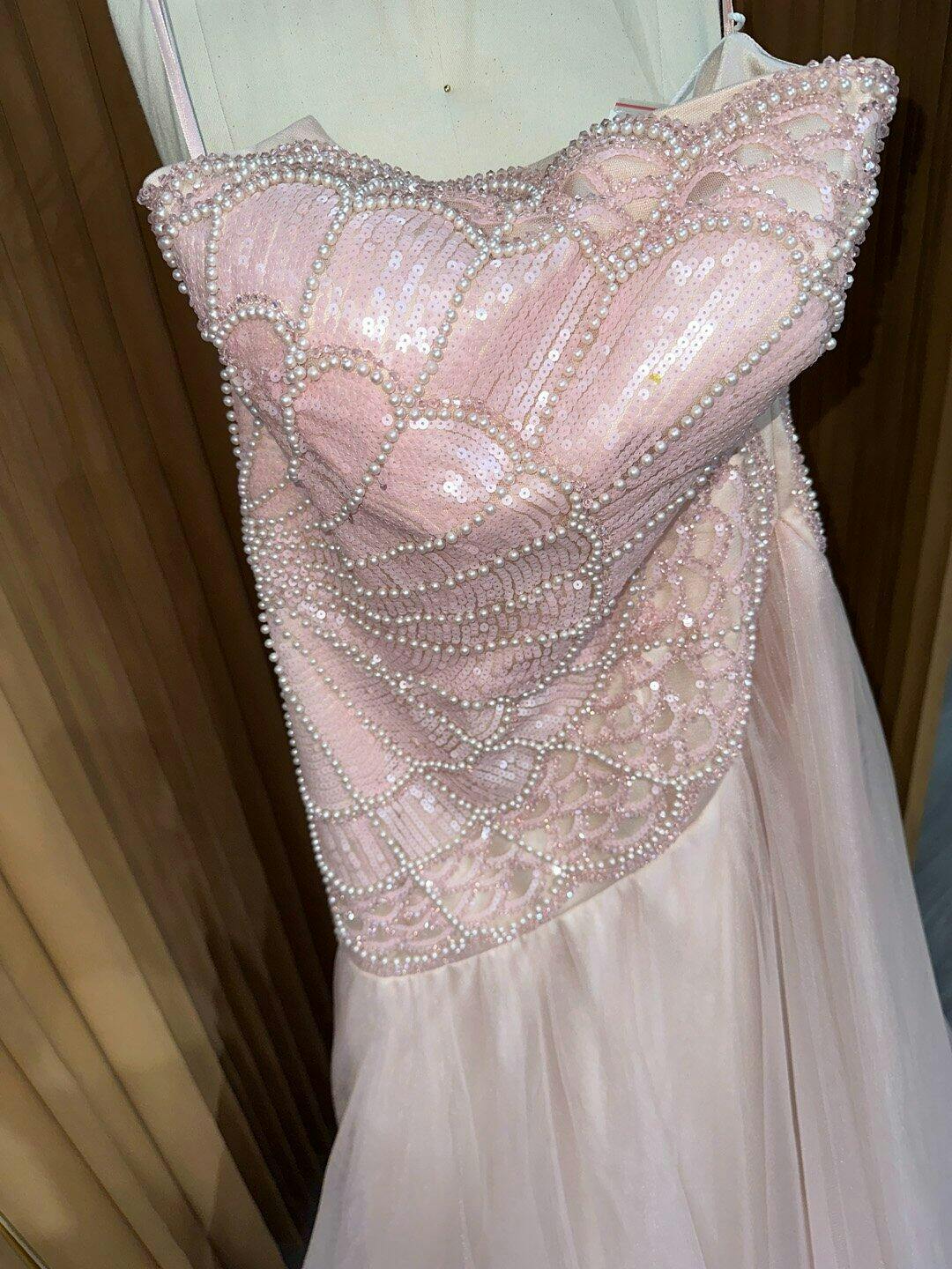 Absolutely love this dress! The pink crystals sparkle beautifully, and the embroidery is so delicate. The long sleeves add an elegant touch. I felt like a princess at my event!