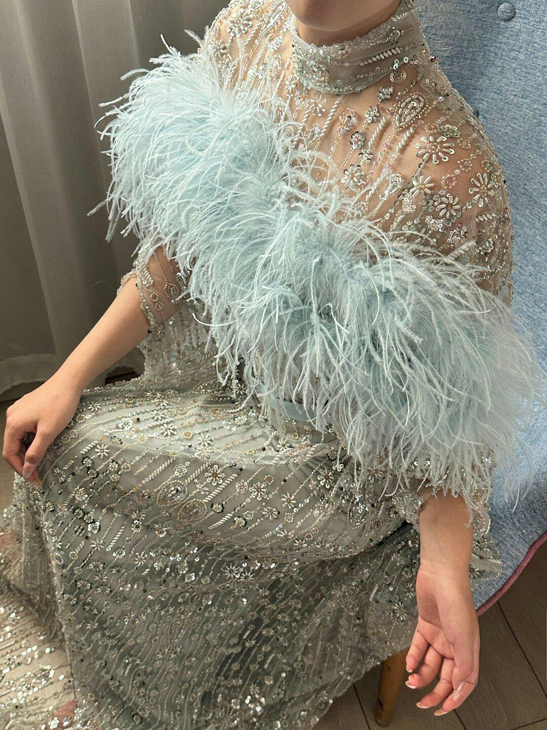 This dress is even more beautiful than I imagined. The crystal details are delicate and it makes me look so elegant!