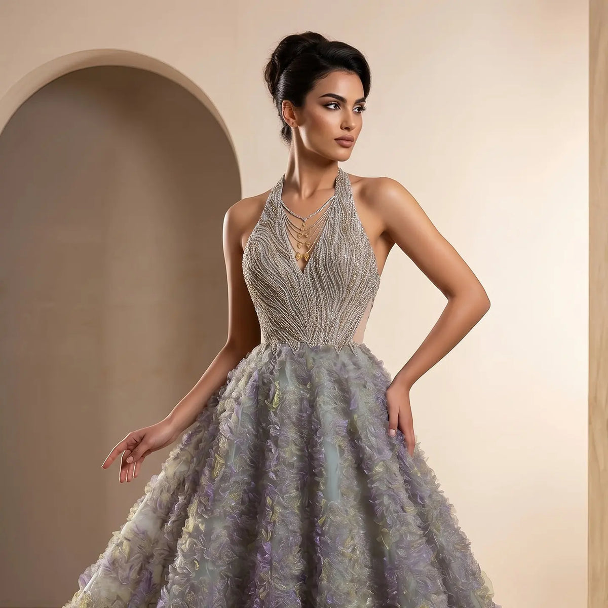 - Neckline: Halter
